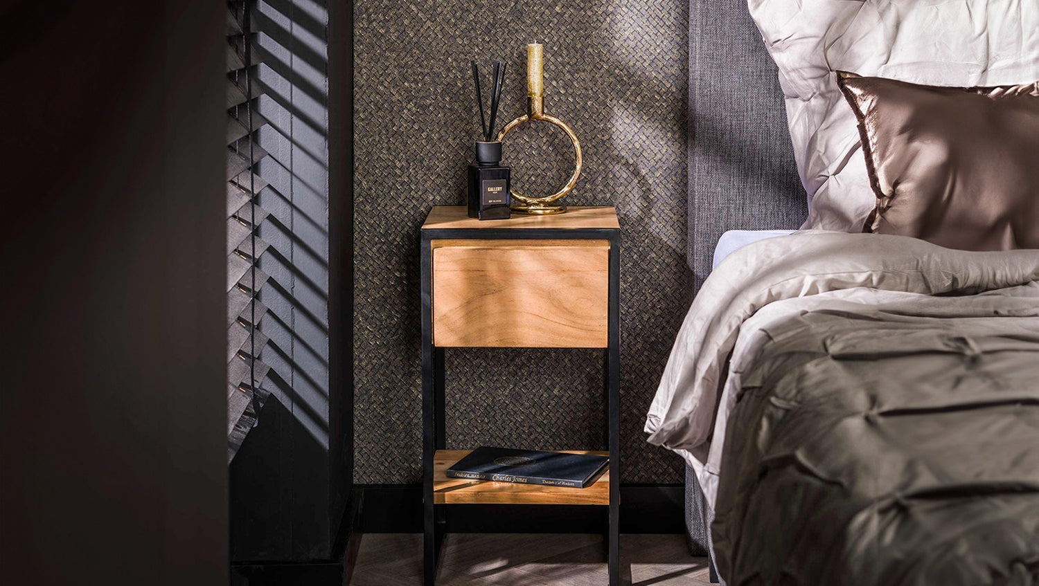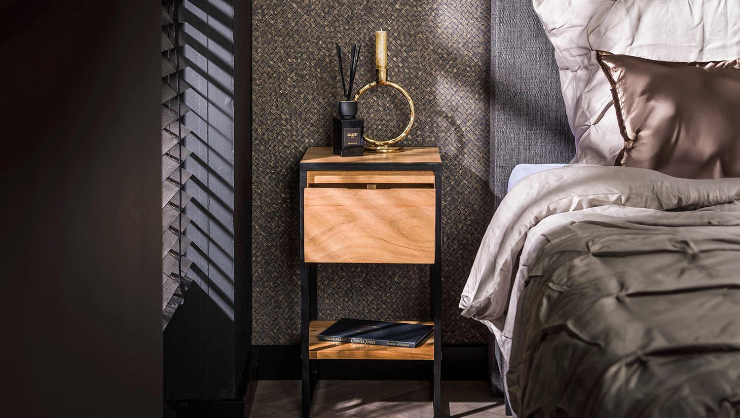 La mesilla de noche KAWOLA SEKI impresiona por su diseño moderno y minimalista y su elaboración de alta calidad. Fabricada en madera de acacia maciza con un lacado transparente mate, aporta calidez natural y elegancia a su dormitorio. La robusta estructura de metal negro confiere a la mesilla un aspecto limpio e industrial. Equipada con un práctico cajón y un estante adicional, SEKI ofrece espacio de almacenamiento para libros, accesorios y objetos de uso cotidiano. Con sus compactas dimensiones de 30 x 30 x 55 cm, la mesilla de noche también encaja perfectamente en habitaciones pequeñas. La mesilla de noche SEKI combina funcionalidad, diseño atemporal y materiales naturales: perfecta para conceptos de vida modernos con estilo.