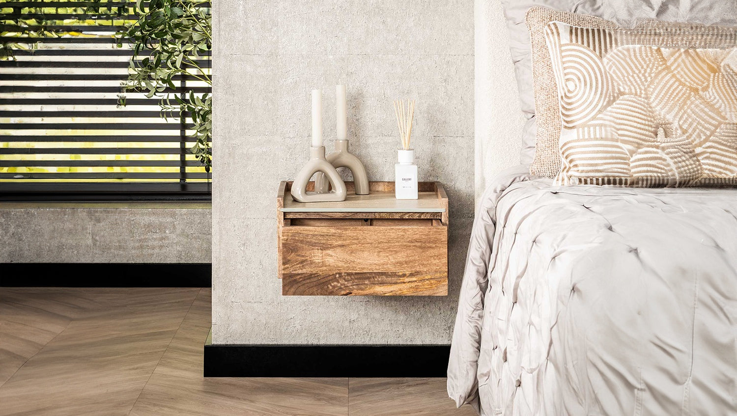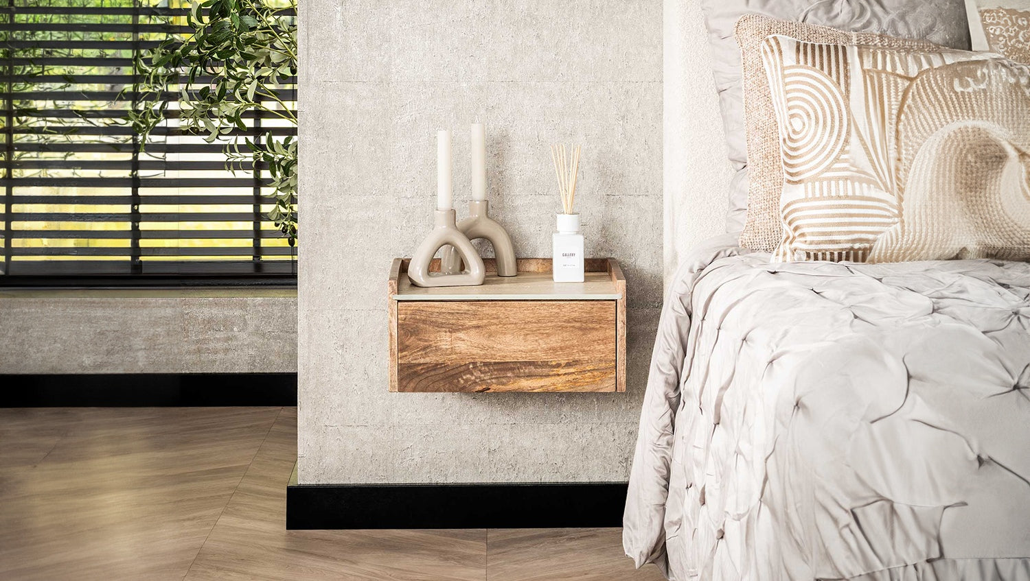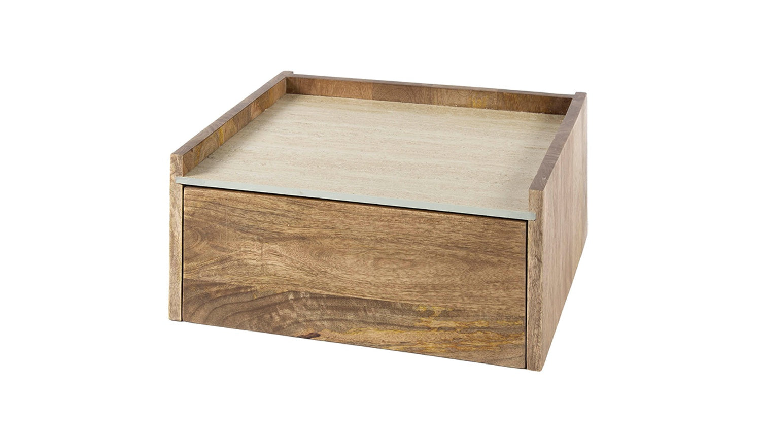La mesilla de noche NORYN de KAWOLA combina el encanto natural con la elegancia moderna. Fabricada en madera de mango maciza, aporta calidez y carácter a tu dormitorio. La elegante encimera de cerámica en un elegante aspecto travertino da al diseño un toque lujoso y crea un aspecto sofisticado. El cajón de madera de mango integrado ofrece un práctico espacio de almacenamiento para objetos personales y mantiene la superficie ordenada. Con unas dimensiones compactas de 40 x 35 x 19 cm, NORYN es ideal para dormitorios modernos con sentido del diseño y la calidad. La mesilla de noche NORYN es la combinación perfecta de mano de obra de alta calidad, estética atemporal y diseño funcional: una declaración de estilo en cualquier entorno vital.