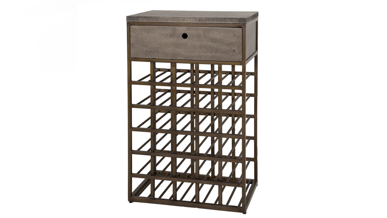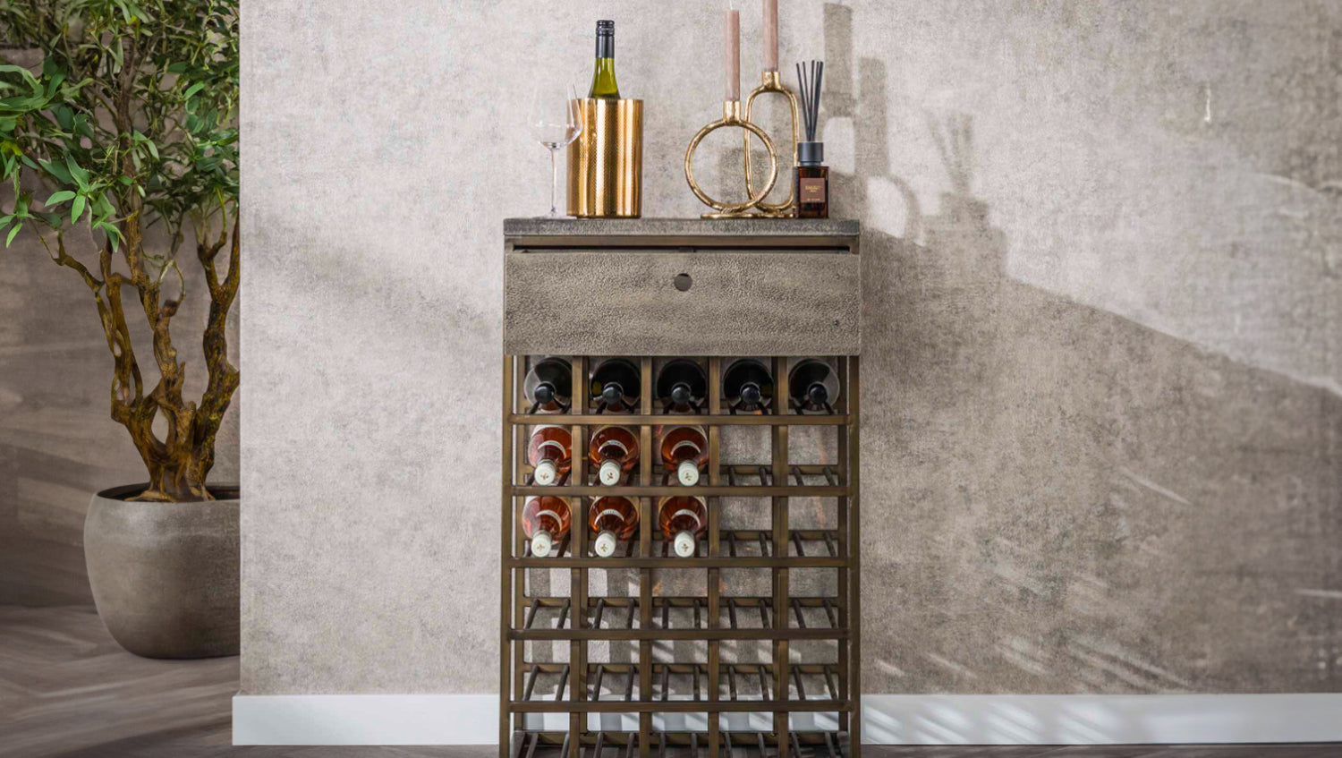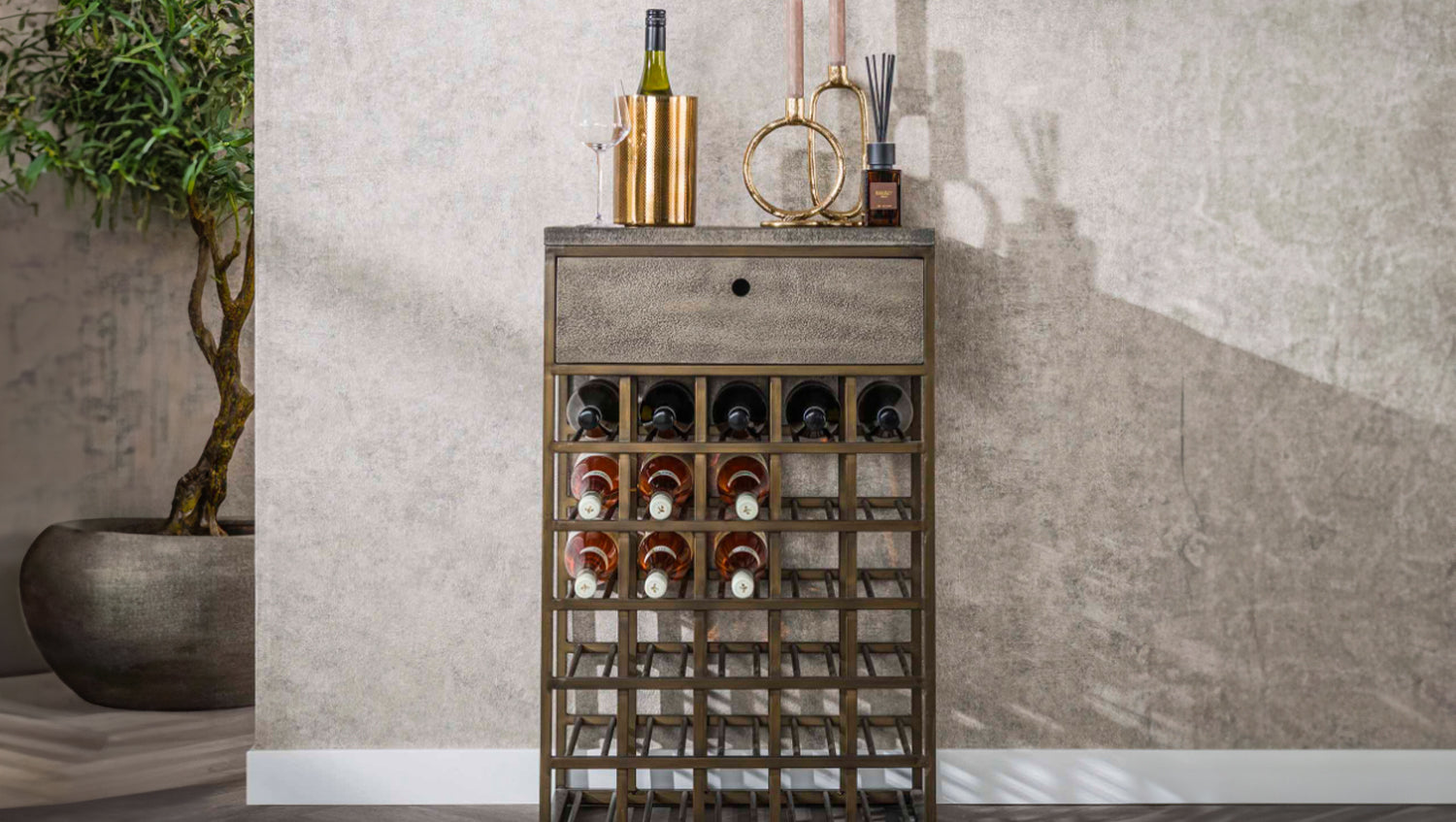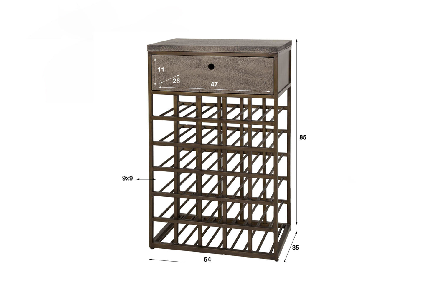 El armario para vinos KAWOLA BALZAR es la combinación perfecta de estilo y funcionalidad. La exclusiva superficie de hierro con estructura 3D confiere al mueble un toque artesanal especial. Las robustas varillas de metal con aspecto de latón envejecido garantizan un almacenamiento seguro y elegante de las botellas de vino. Un práctico cajón ofrece espacio adicional para guardar accesorios como sacacorchos o copas. Con su moderno diseño, el armario para vino BALZAR será el centro de atención de su salón o comedor. Perfecto para los amantes del vino que desean combinar estética y practicidad en un mueble único.