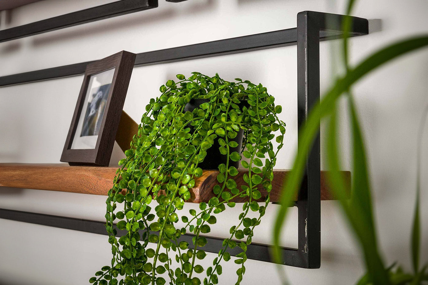 La estantería de pared KAWOLA ERGEA de 40 cm es una acertada síntesis de calidez natural y chic industrial. Consta de una balda de 36 cm de ancho de madera maciza de acacia, cuyos extremos tienen una robusta forma de tronco de árbol lijado que crea un aspecto auténtico y único. La plancha de madera está rodeada por un robusto marco de acero vintage, que confiere a la estantería su carácter inconfundible. La instalación es sencilla y segura en la pared gracias a dos ojales de fijación.