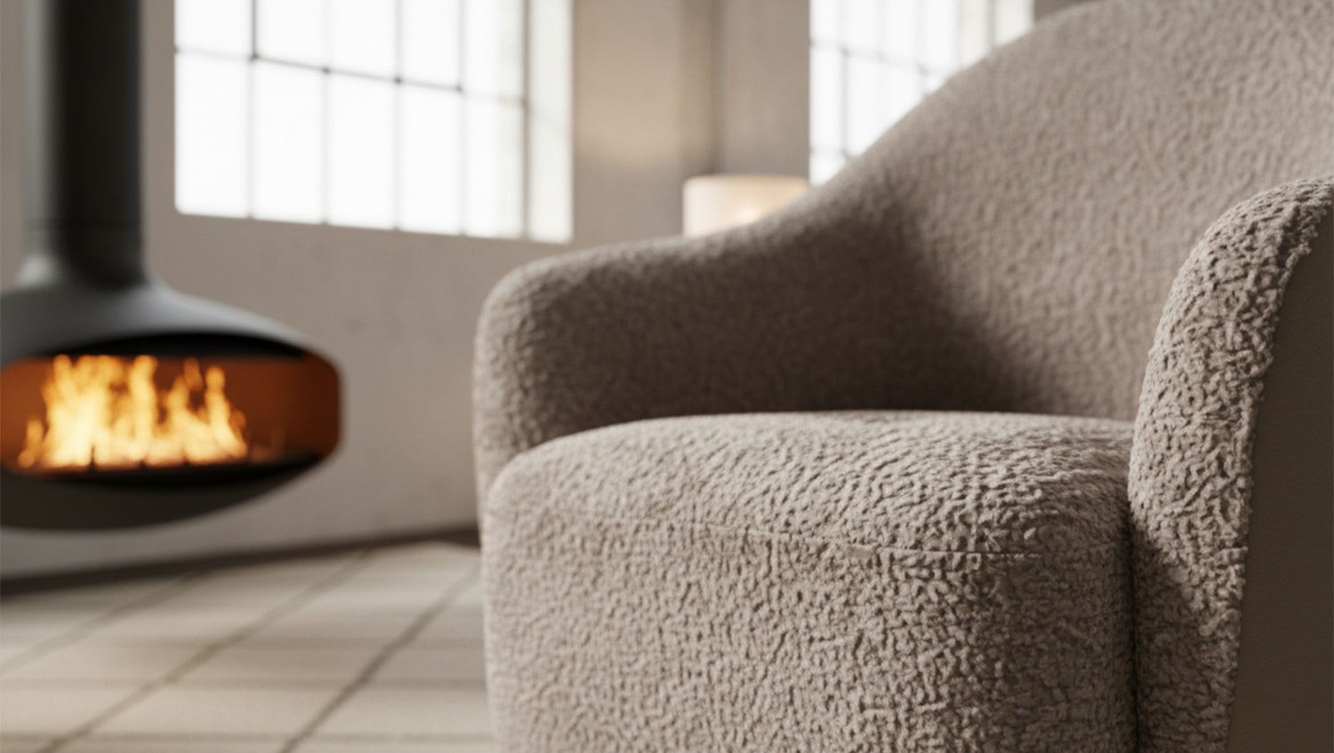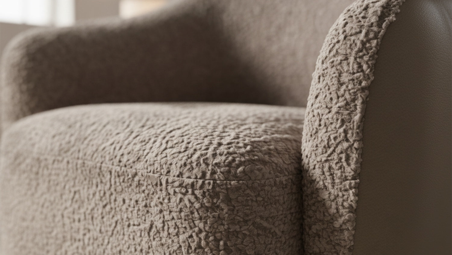 • Tejido dividido: parte delantera en suave tejido bouclé, parte trasera en suave piel sintética