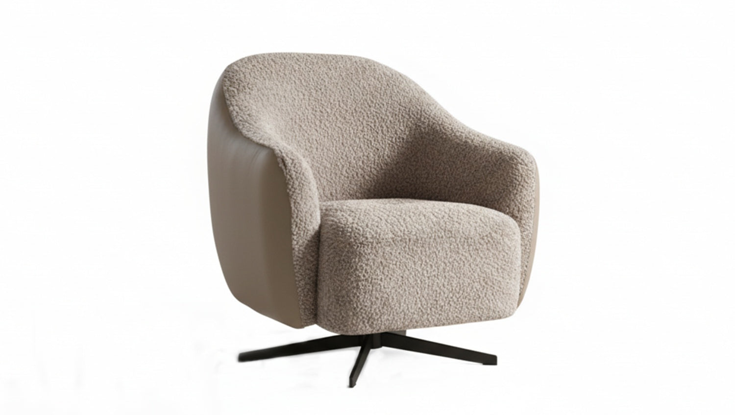 El sillón giratorio BRITTO de KAWOLA es una declaración de principios para la vida moderna: suave, confortable y elegantemente minimalista en su lenguaje de diseño. Con una combinación bien pensada de materiales y proporciones, BRITTO combina lo acogedor con la sofisticación del diseño - perfecto para interiores conscientes del estilo. La división de la tela en dos partes es lo que hace que este sillón sea tan atractivo: La parte delantera está tapizada en un tejido bouclé de alta calidad con una textura suave y viva que resulta agradable al tacto. Con una altura total de 85 cm y una anchura de 81 cm, BRITTO ofrece un asiento compacto pero generosamente acolchado. La altura del asiento de 44 cm y su profundidad de 55 cm garantizan una posición sentada cómoda y relajada, mientras que la altura del reposabrazos de 62 cm redondea a la perfección la comodidad del asiento. La función giratoria de 360° permite mover el sillón con flexibilidad en cualquier dirección: ideal para salones modernos, salas de estar o zonas de hotel. Su forma suavemente redondeada, las transiciones fluidas entre el asiento, el respaldo y los reposabrazos y la armoniosa coordinación de colores y materiales hacen que el BRITTO sea un verdadero punto de atracción y un lugar favorito para muchas horas de relajación.