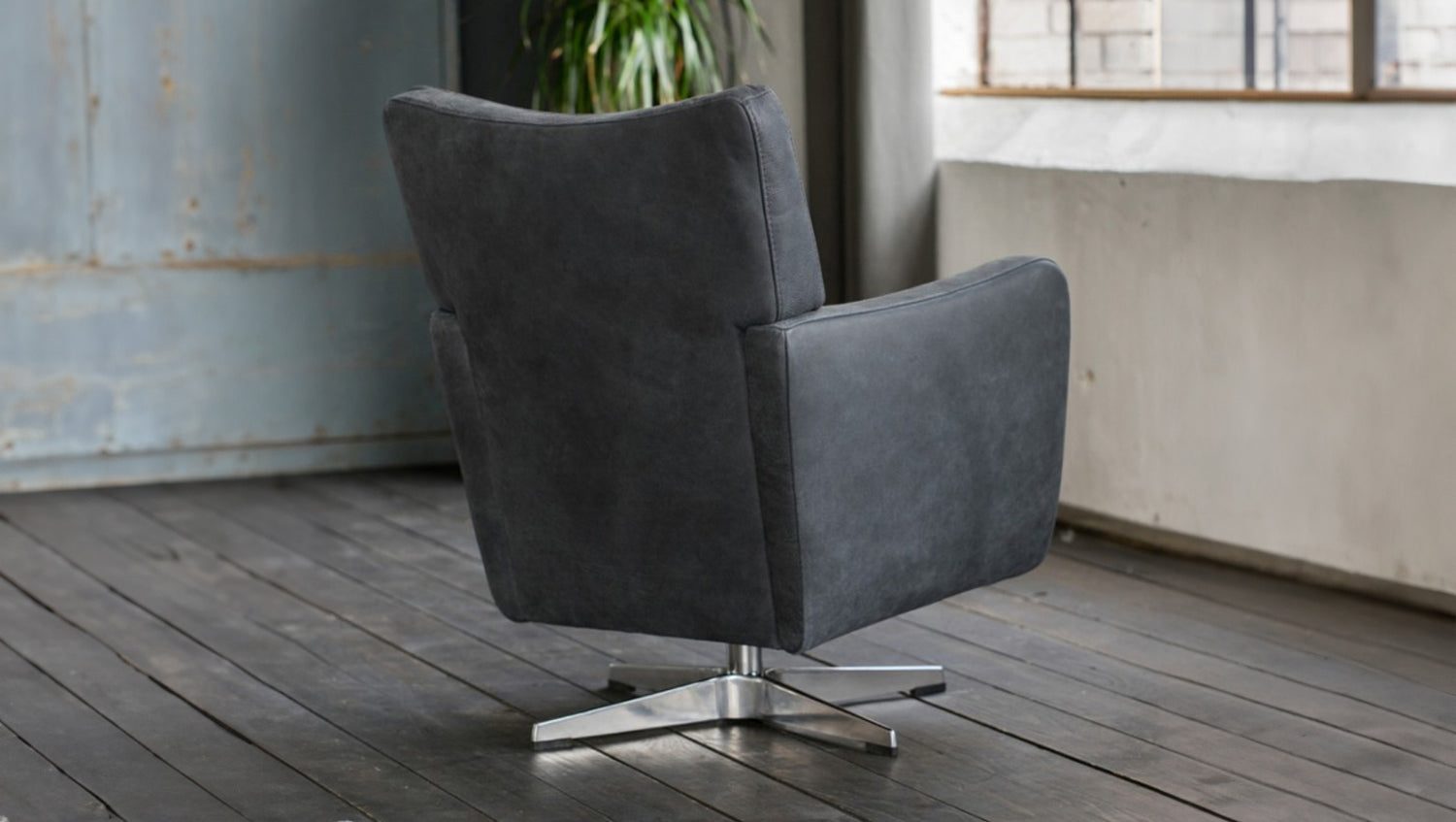El sillón ALINE impresiona por su claro lenguaje de diseño, hábilmente roto por el respaldo y los reposabrazos ligeramente curvados. El sillón giratorio está completamente revestido de un bonito cuero negro, que combina a la perfección con la forma y la elección de los pies. Gracias a sus líneas rectas y a la elección del revestimiento, el sillón giratorio puede integrarse en cualquier salón o estudio. Además de su magnífico diseño, el sillón ALINE también impresiona por su función giratoria, que permite moverse libremente por la habitación.