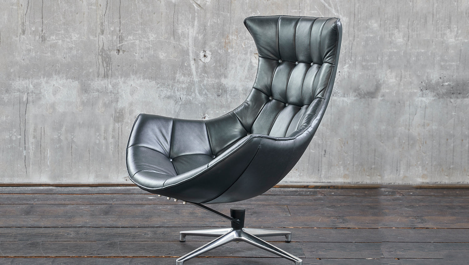 Silla giratoria KAWOLA Sillón SKIO de piel gris plateado