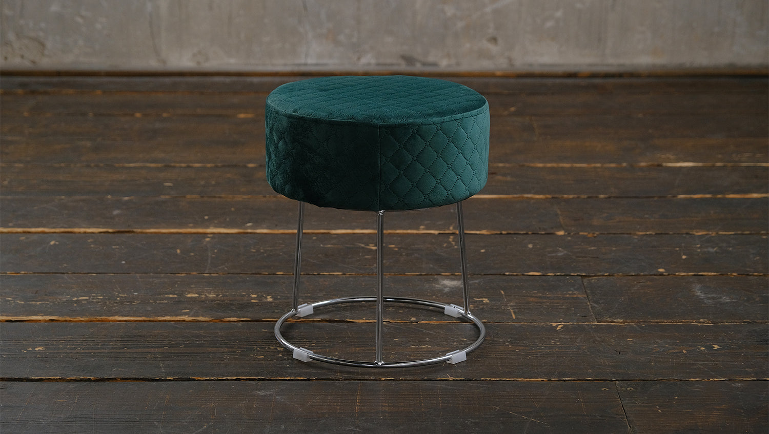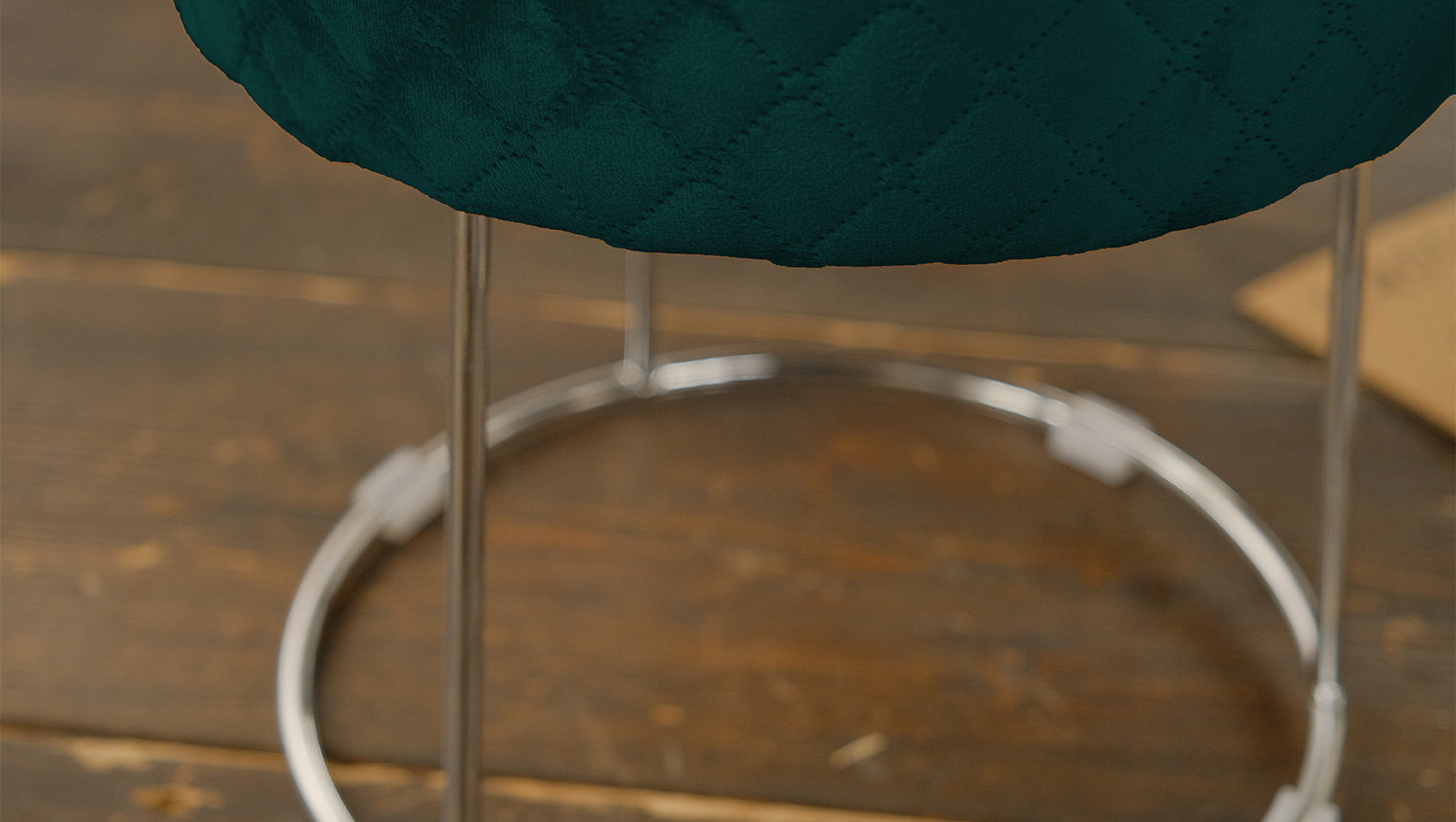 KAWOLA taburete DEMI taburete tapizado Terciopelo verde base plata