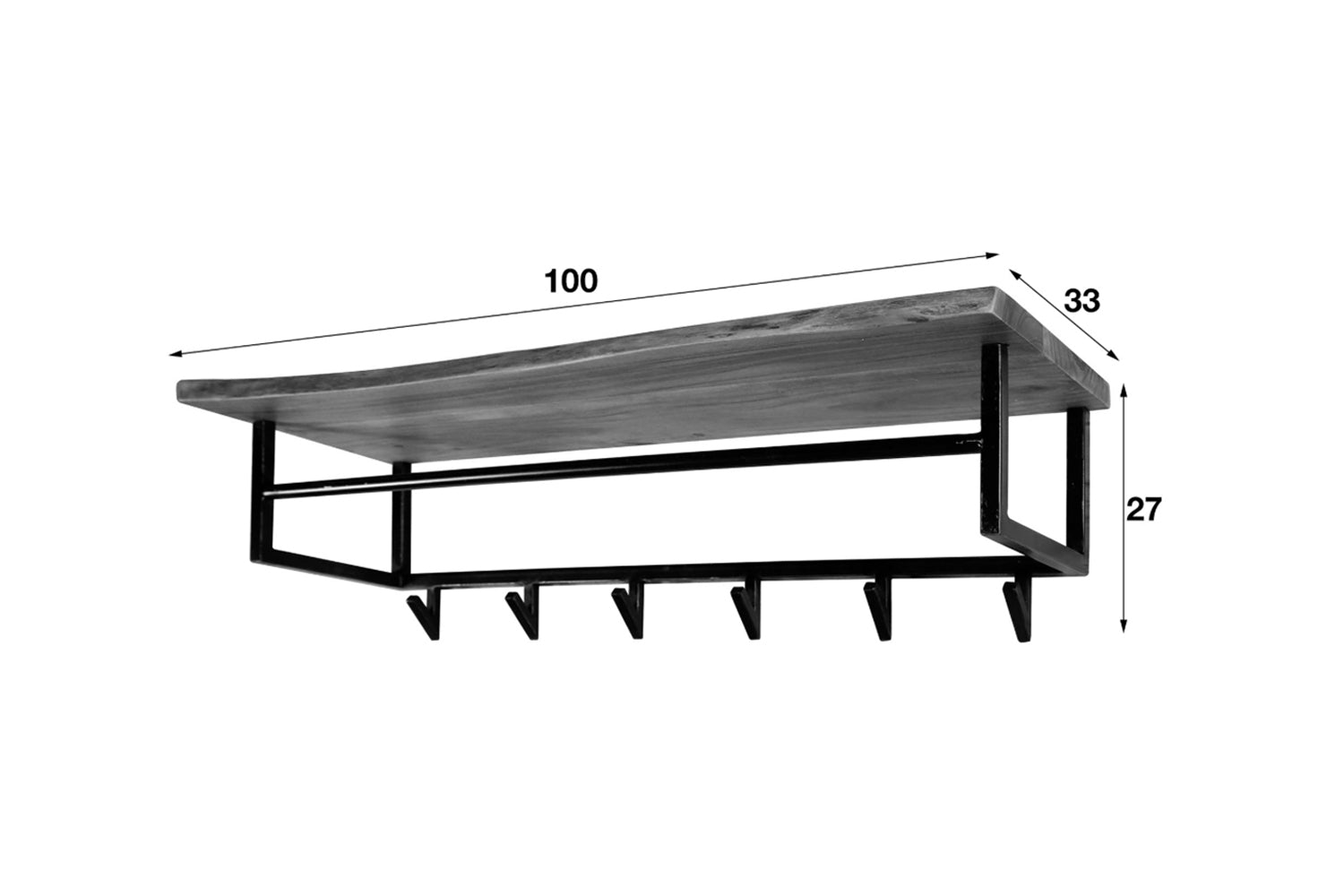 El perchero de pared NEREA de KAWOLA combina materiales de alta calidad con una sofisticada funcionalidad. El estante para sombreros de madera maciza de acacia (25 mm de grosor) impresiona por sus finas vetas y nudos naturales, que le confieren un carácter único. Su elaboración artesanal le confiere un aspecto elegante en la pared. Una robusta varilla de metal negro pulido y 6 ganchos permiten colgar abrigos, chaquetas o bolsos directamente en el gancho o en una percha. Gracias a los dos ojales, el Guardarropa de 100 cm de ancho, 27 cm de alto y 33 cm de fondo es fácil de instalar. NEREA es perfecto para pasillos, vestíbulos y zonas de entrada.