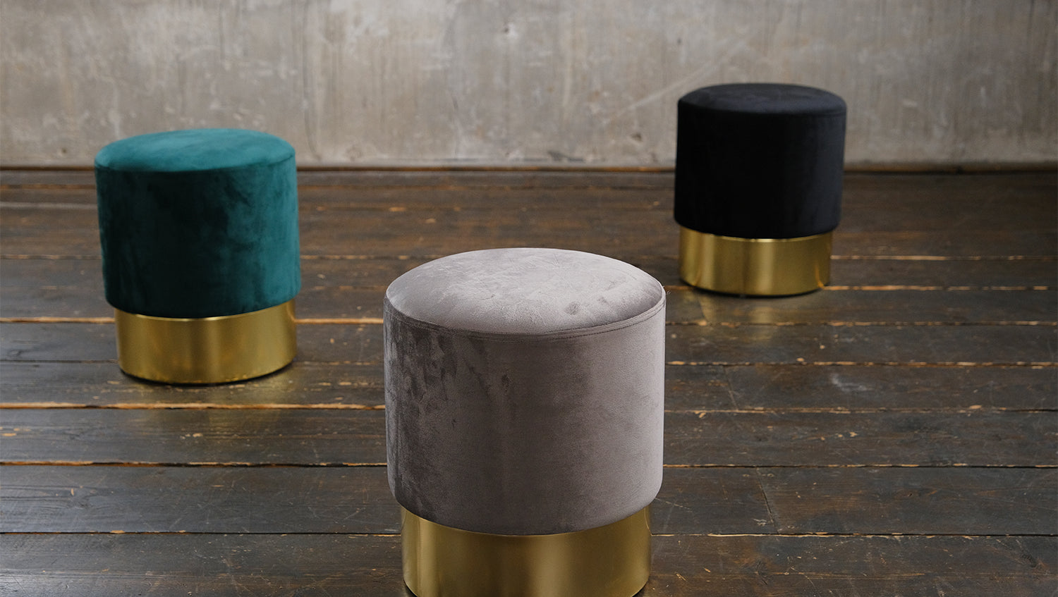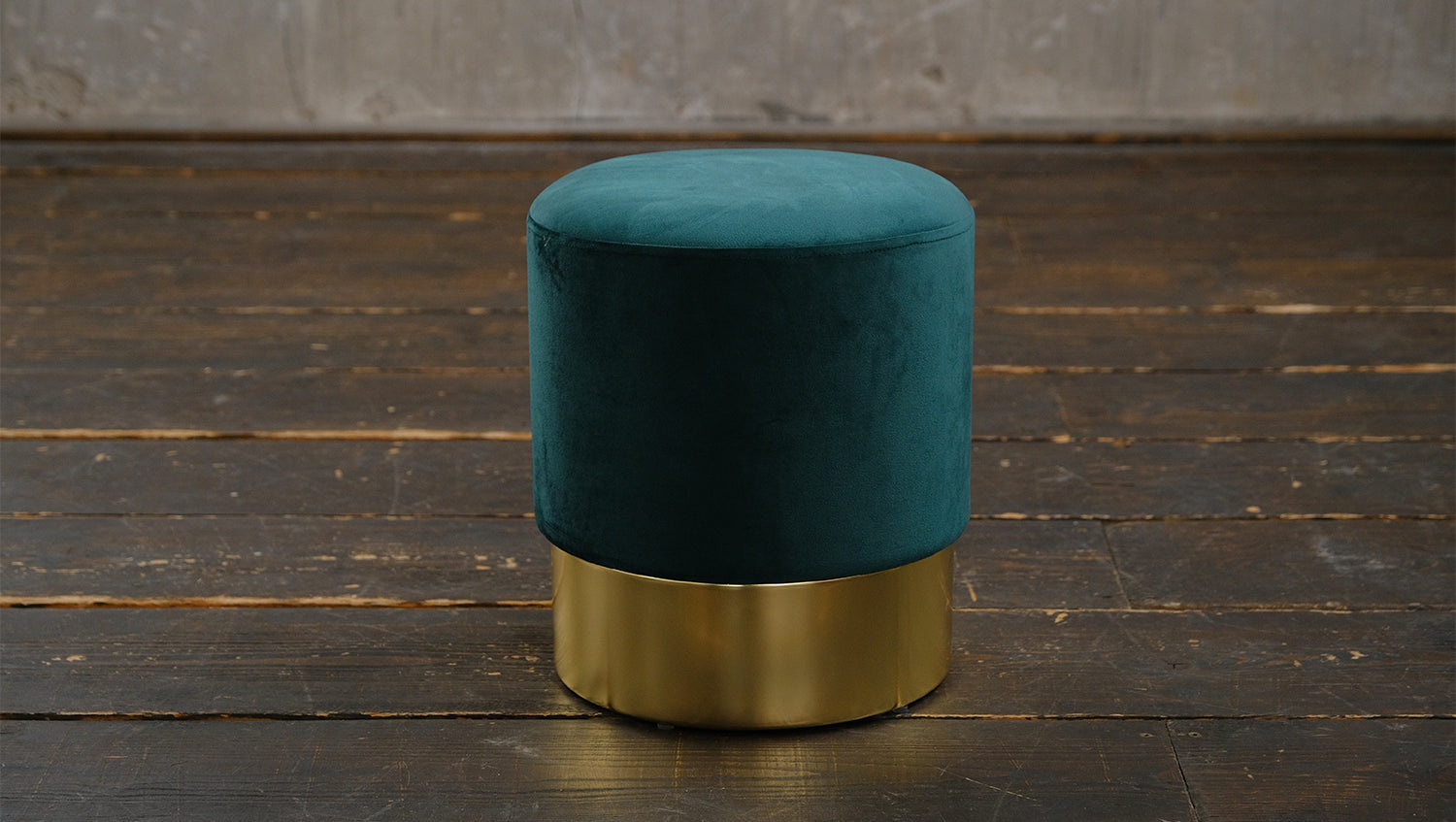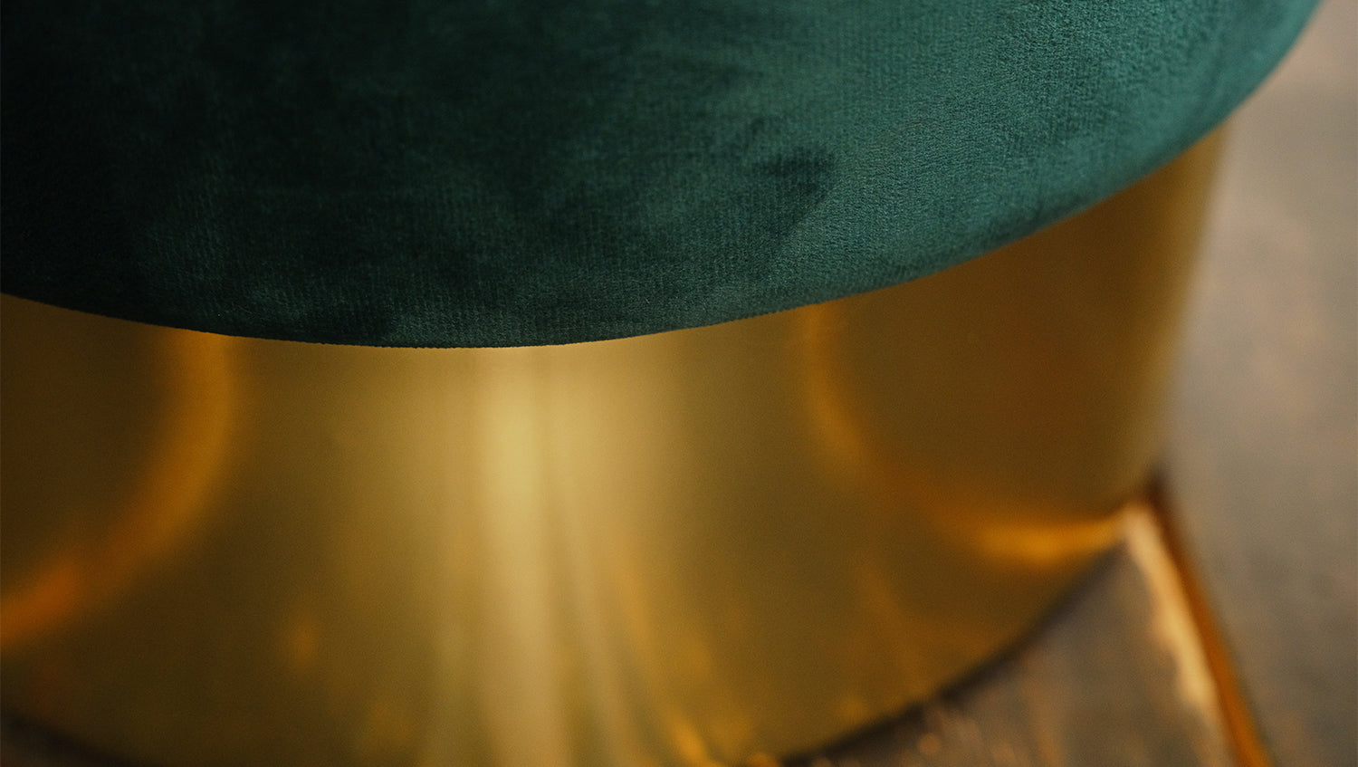 KAWOLA taburete LIZA taburete tapizado Puf terciopelo verde base oro