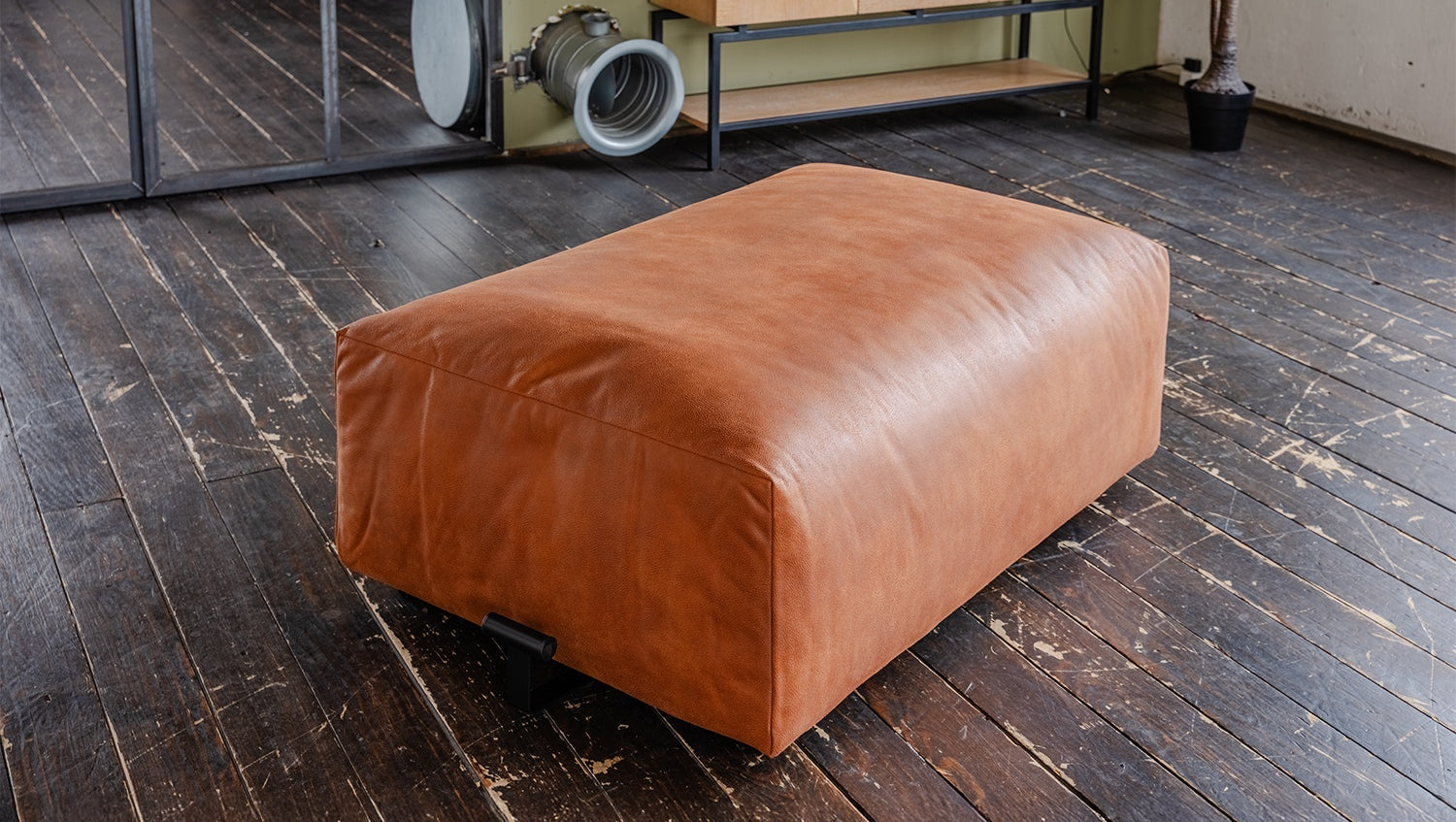KAWOLA elemento de asiento Puf MIA cuero fibra tejido coñac