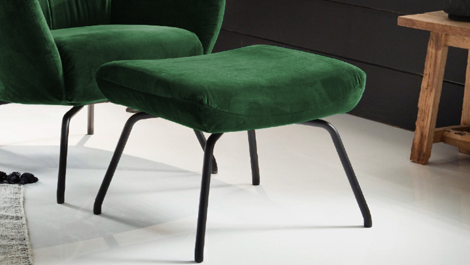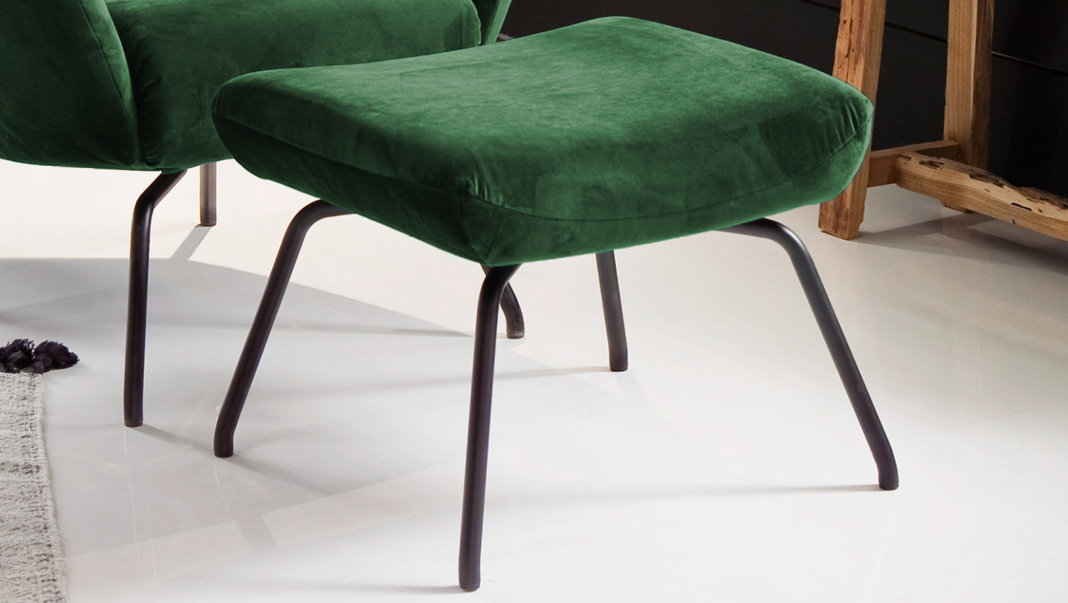 KAWOLA Puf LOTTE taburete tapizado terciopelo esmeralda