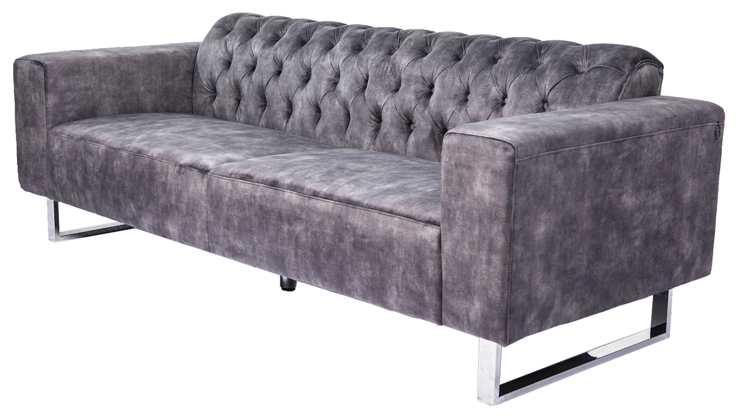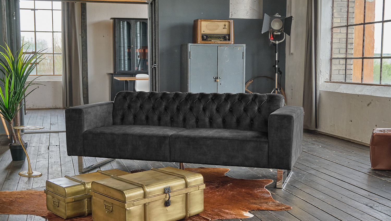 Sofá KAWOLA NILO de 3 plazas de terciopelo vintage antracita
