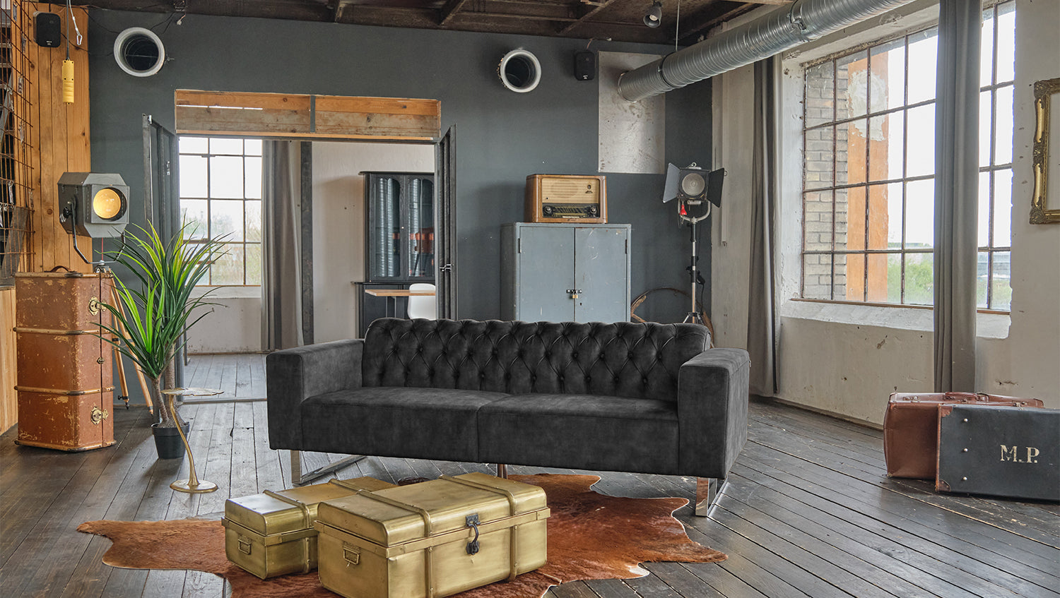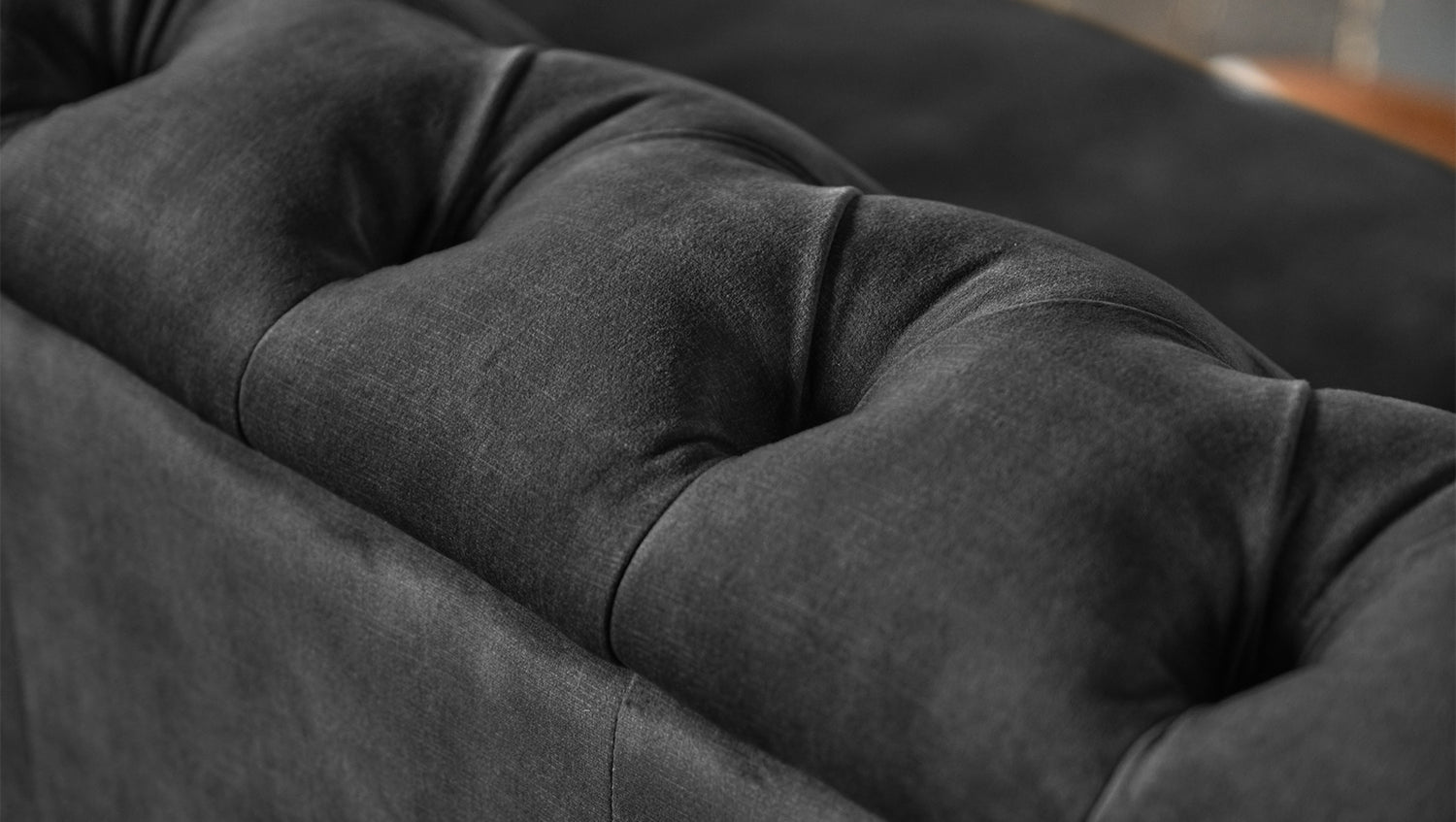 El sofá NILO de KAWOLA es un elegante sofá con tapizado de terciopelo en antracita vintage aterciopelado. El sofá para amantes del diseño ofrece espacio para hasta tres personas y es especialmente acogedor gracias al núcleo de muelles y al acolchado de espuma. El elaborado acolchado del respaldo y el terciopelo de alta calidad hacen que el sofá atraiga todas las miradas.