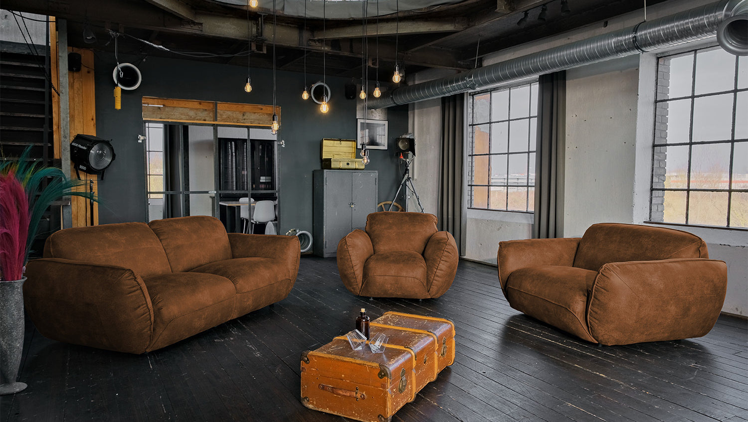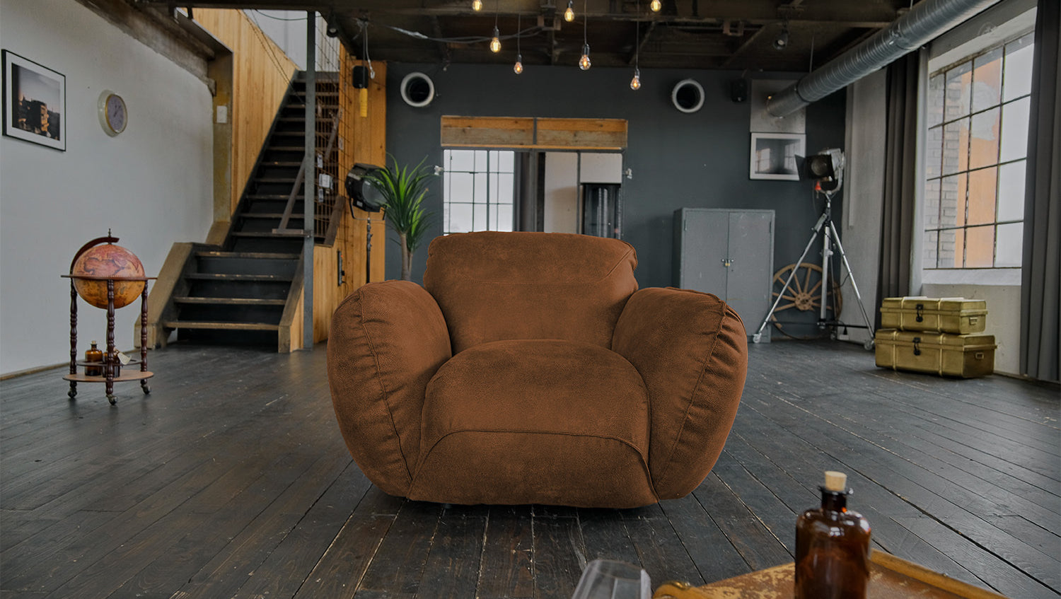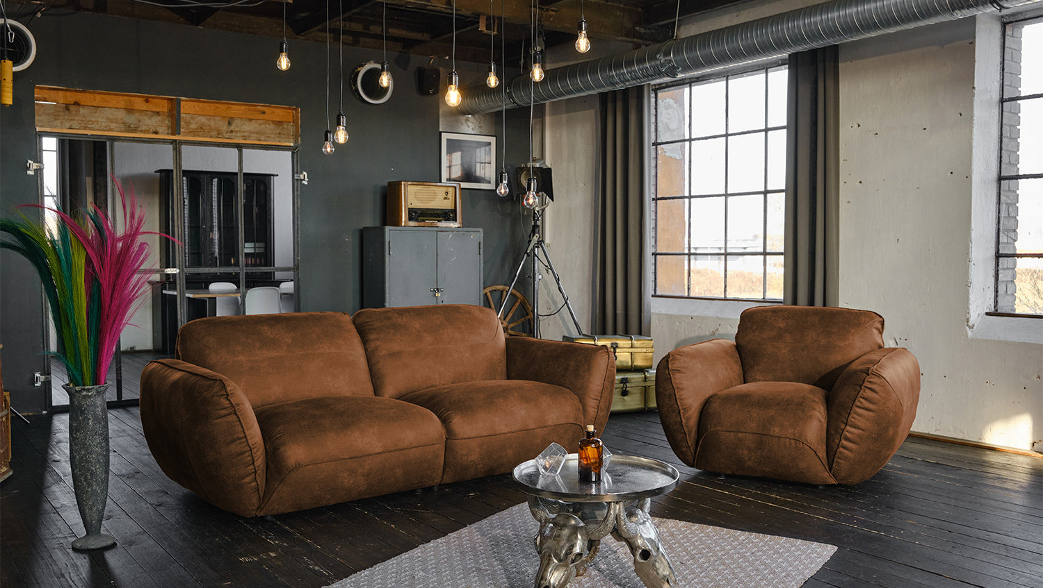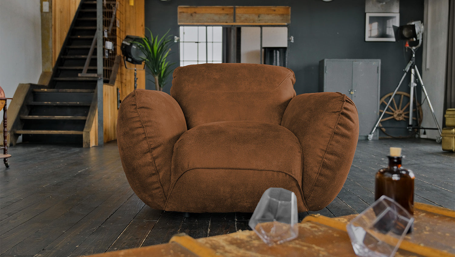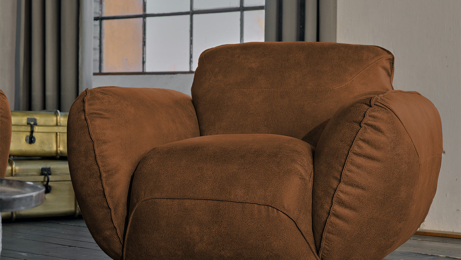 Sillón KAWOLA DAVITO con piel sintética de aspecto vintage marrón medio