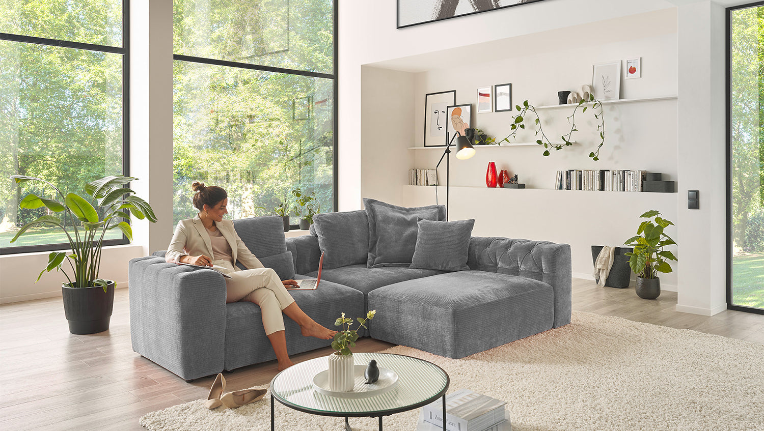 El sofá modular SEPHI es tan individual como usted. Los elementos combinables lo convierten en un verdadero artista del cambio rápido. Simplemente personalice su sofá según sus propios deseos, ¡cada día de nuevo! Puede combinar los distintos módulos según su estado de ánimo. Las imágenes de nuestros productos le servirán de inspiración. Por supuesto, éstas son sólo algunas sugerencias. Ya sea un sofá esquinero, un sofá gigante o un sofá de 3 plazas con asiento largo: ¡su imaginación no tiene límites! O simplemente tome como punto de partida nuestro sofá modular SEPHI: con los elementos individuales y los cojines en diferentes variantes que también están disponibles en nuestra tienda, podrá ampliar su sofá actual como desee y de forma totalmente personalizada. ¡Diviértase hojeando!