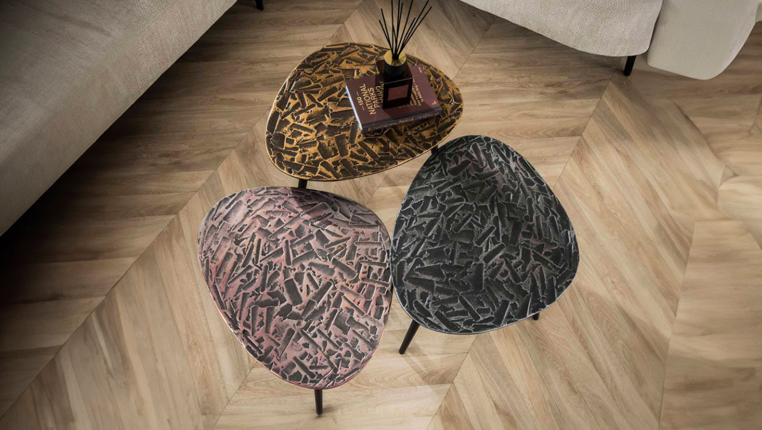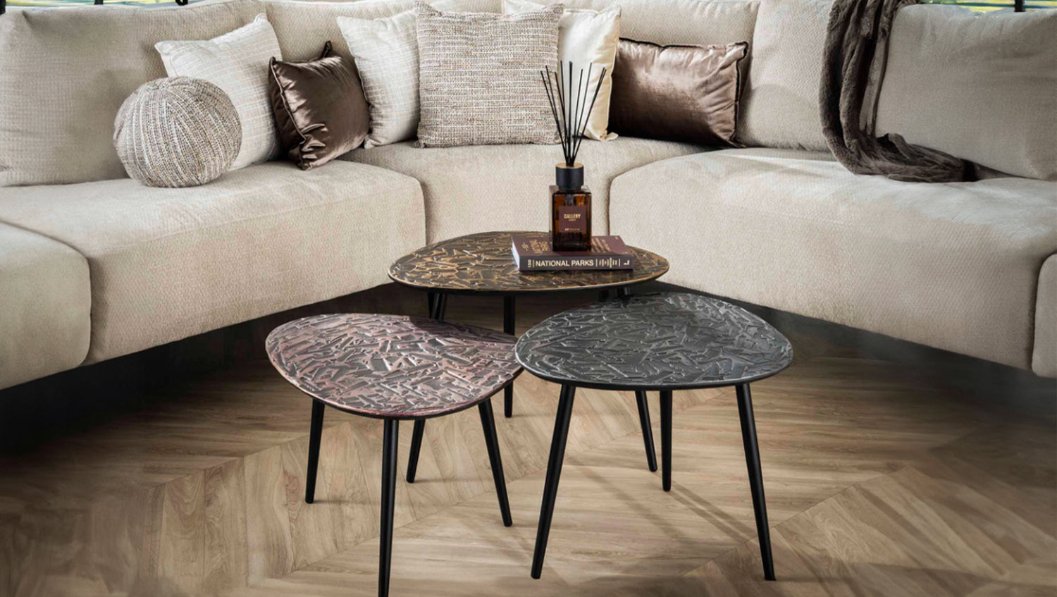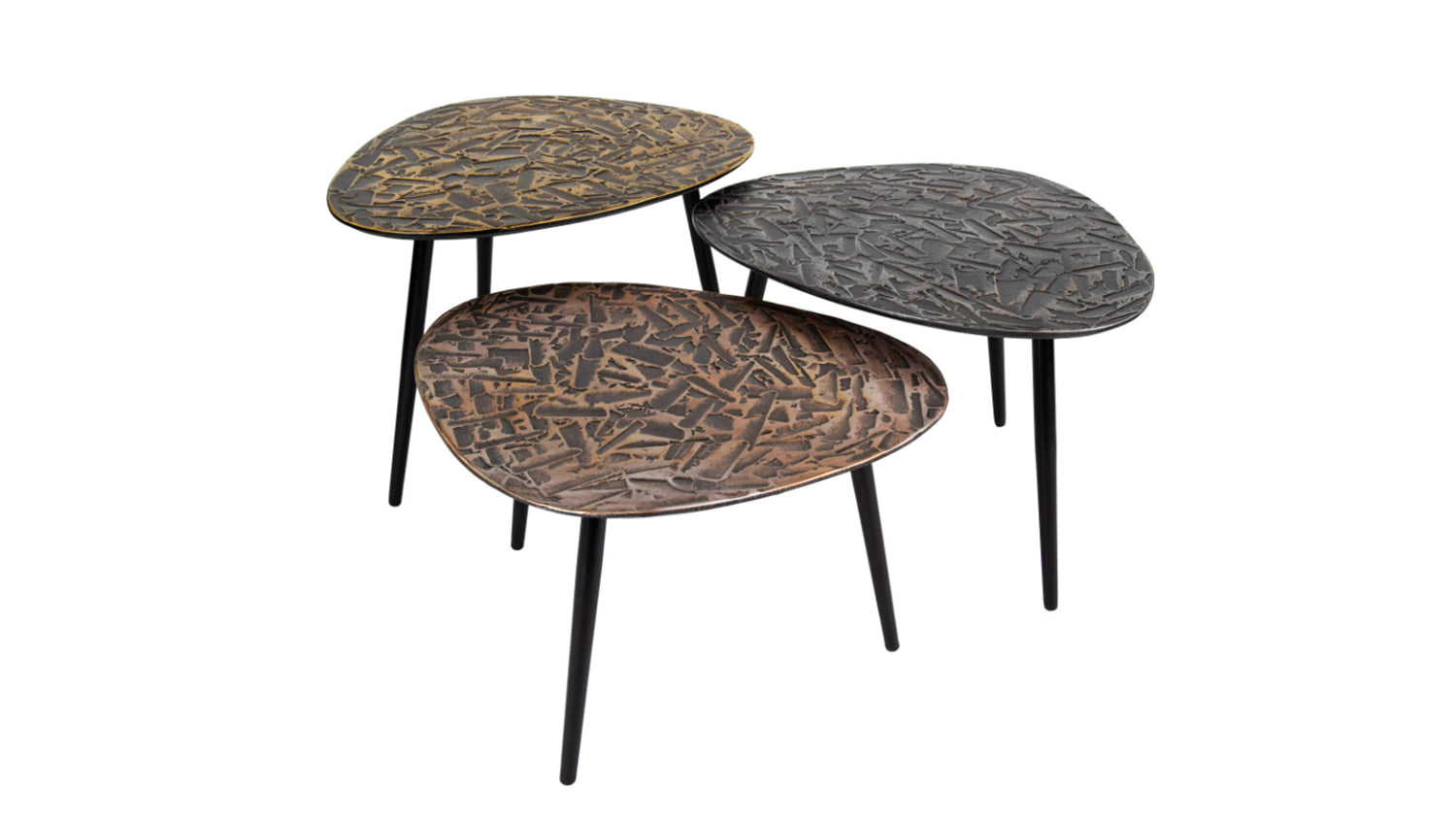 KAWOLA mesa de centro YATA conjunto de 3 piezas de metal negro / plata / bronce triangular