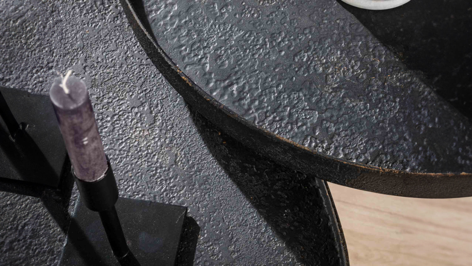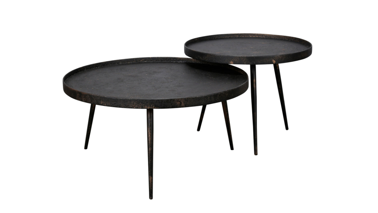 El juego de mesa de centro redonda MAURI de KAWOLA está acabado en metal negro. El tablero tiene un bonito acabado que le confiere un aspecto único. Las mesas pueden colocarse juntas según se desee. Este conjunto llama la atención. Consta de dos mesas. La más grande tiene un diámetro de 76 cm y una altura de 40 cm, mientras que la más pequeña tiene un diámetro de 58 cm y una altura de 44 cm. Ya sea en un moderno loft, en un acogedor salón o en una elegante sala de estar, el juego de mesa de centro MAURI pone acentos de estilo y combina funcionalidad con una estética atemporal.