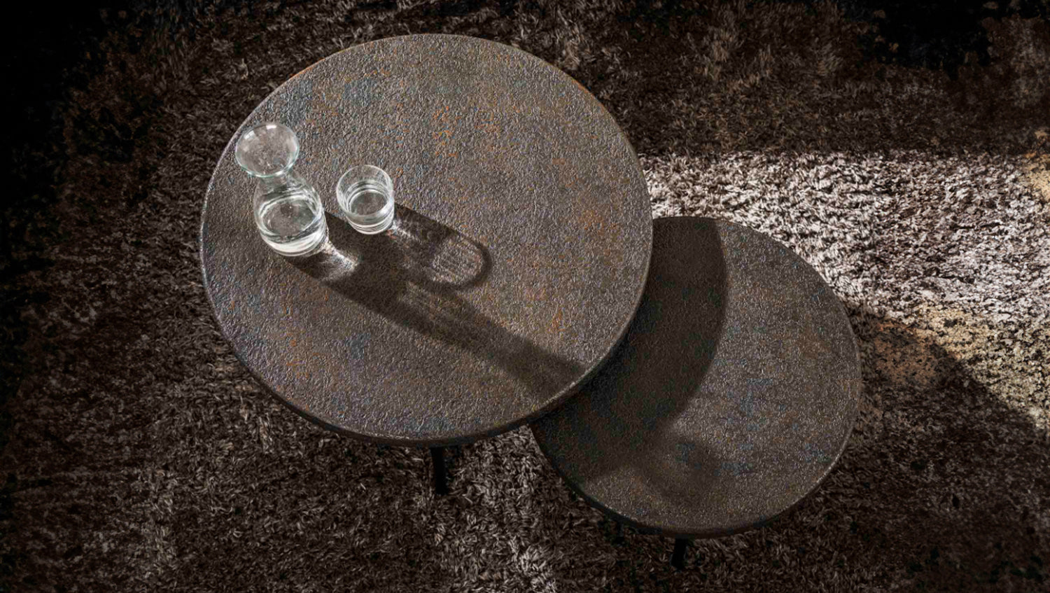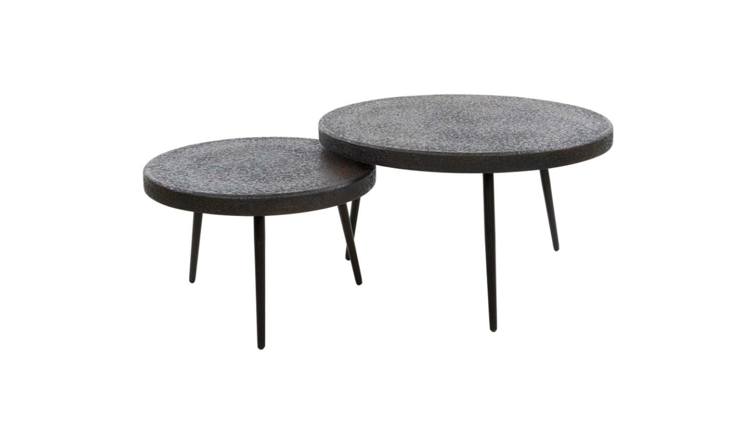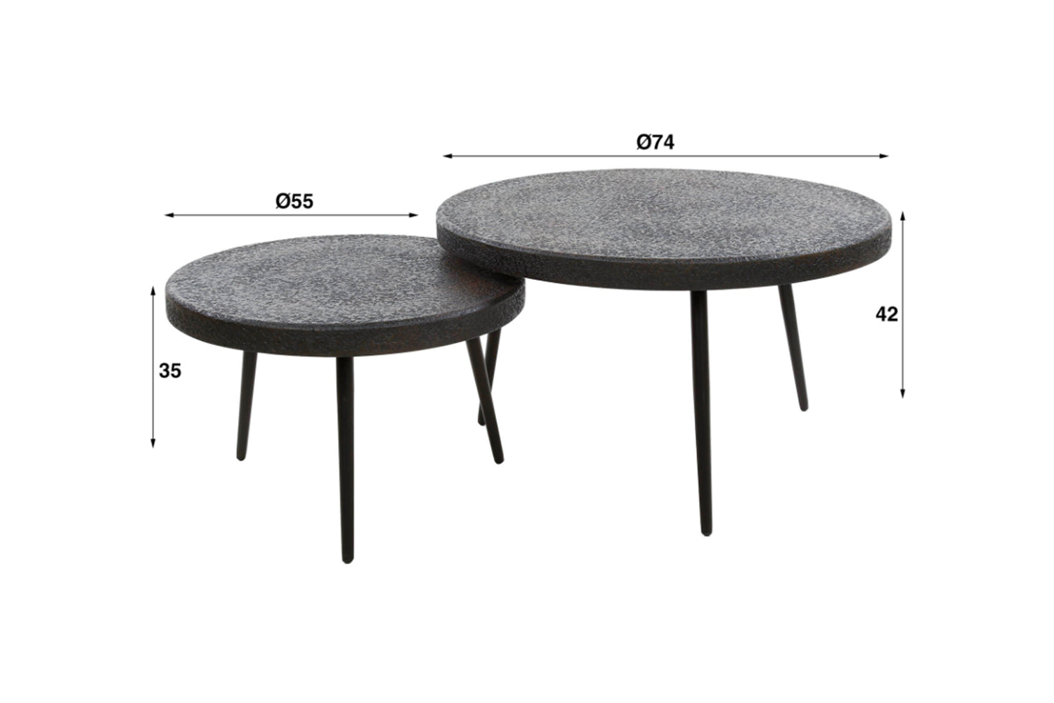El juego de mesa de centro redonda ANTAS, compuesto por 2 mesas, está fabricado en metal líquido e impresiona por su aspecto contemporáneo y fresco. La superficie es oscura con un tono bronce/marrón. La mesa más grande tiene un diámetro de 74 cm y una altura de 42 cm. La mesa más pequeña tiene un diámetro de 55 cm y una altura de 35 cm. Ya sea en el salón, en la sala de estar o como elegante estantería, el juego de mesas de centro ANTAS encaja en cualquier hogar y es toda una declaración de diseño.