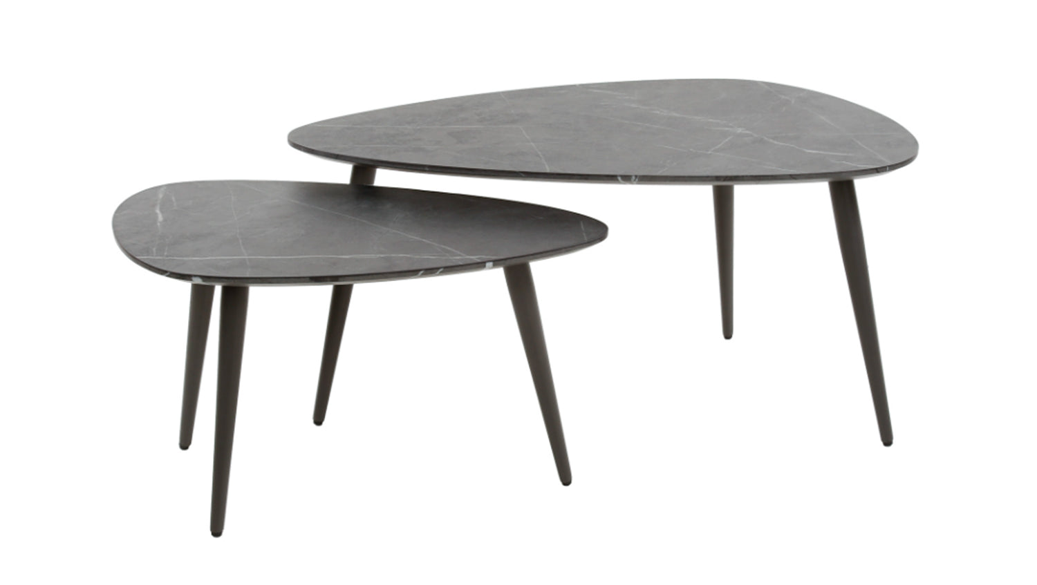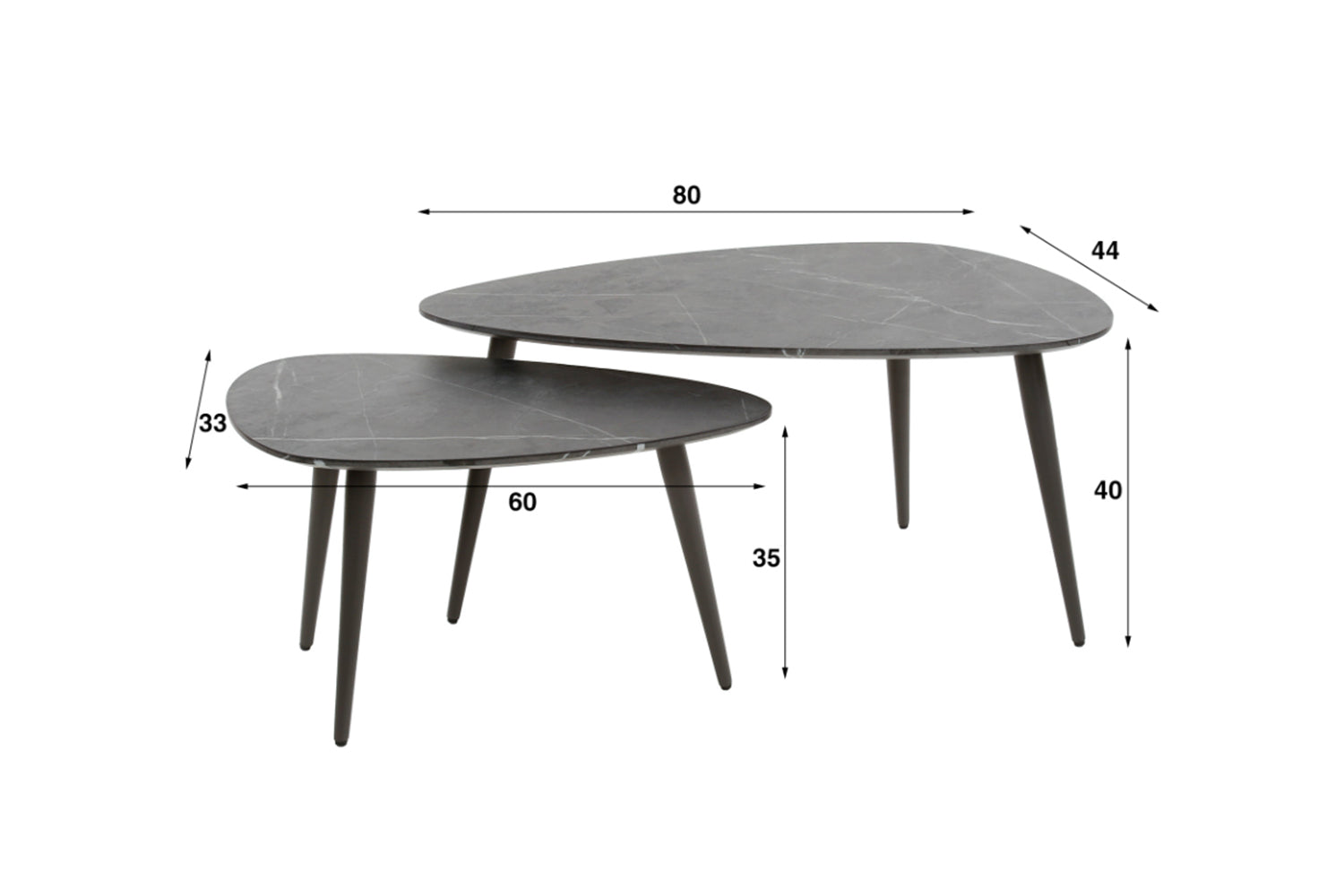 El juego de mesa de centro con forma de pera PARANA de KAWOLA está fabricado en melamina con aspecto cerámico y estructura de acero. La mesa es casi indistinguible de una mesa de cerámica. El tablero de la mesa, hecho a mano, consiste en una capa de resina de melamina que se aplica sobre madera. El material se aplica mediante calor y presión. La belleza del material en combinación con la forma de pera da como resultado una mesa moderna pero atemporal. El juego consta de dos mesas. La mesa más grande tiene una superficie de 80 x 44 cm y una altura de 40 cm, mientras que la mesa más pequeña tiene una superficie de 60 x 33 cm y una altura de 35 cm. Ya sea en un moderno loft, en un acogedor salón o en una elegante sala de estar, el juego de mesa de centro PARANA pone acentos de estilo y combina funcionalidad con estética atemporal.