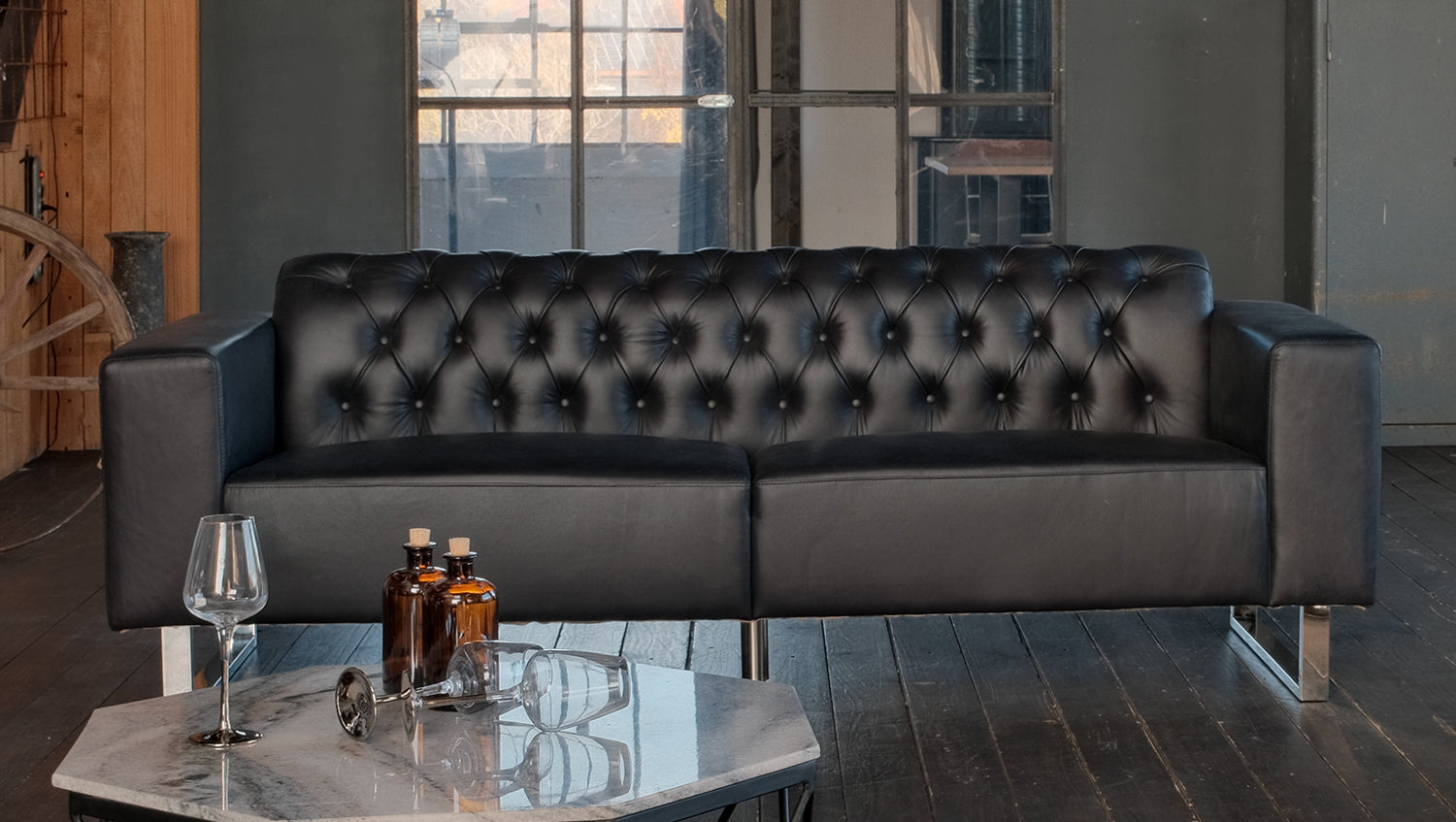 El sofá NILO de KAWOLA es un elegante sofá tapizado en piel auténtica en un moderno color negro. El sofá para amantes del diseño ofrece espacio para hasta tres personas y es especialmente acogedor gracias al núcleo de muelles y al acolchado de espuma. El elaborado acolchado del respaldo y el acabado en piel de alta calidad hacen que el sofá sea el centro de todas las miradas.