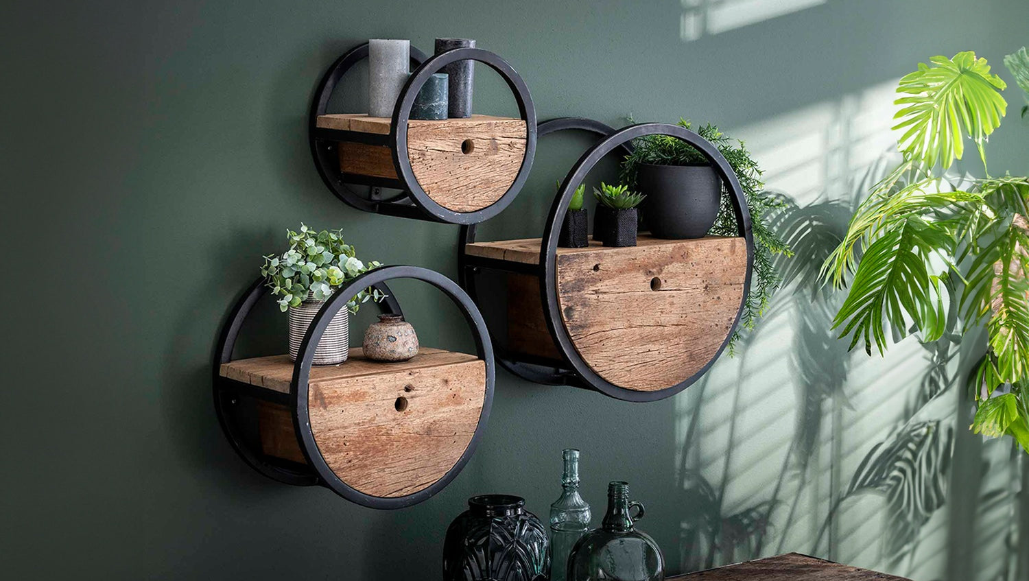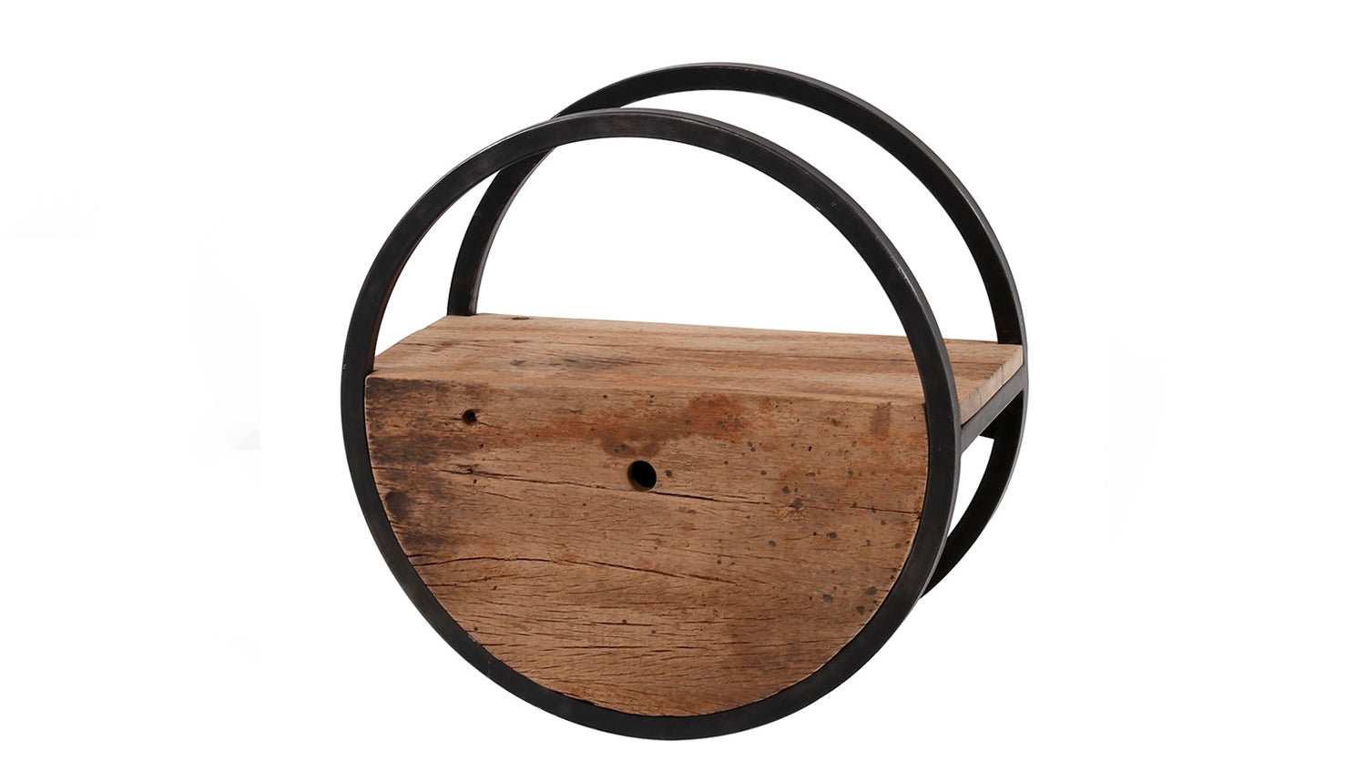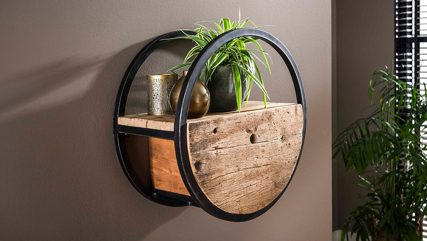 La estantería de pared redonda KAWOLA RADEL Ø50 es un mueble extraordinario que combina el encanto rústico con el diseño industrial moderno. Esta estantería de pared está fabricada con robusta madera dura, cuya singular historia se refleja en su aspecto: Procede de traviesas de ferrocarril, viejos trenes o suelos de iglesias, por ejemplo. Esto confiere a la madera una superficie rugosa y natural y un aspecto inconfundible y robusto. El contraste lo aporta la estructura de metal pulido negro, que confiere a la estantería un toque moderno e industrial. Además, cada estantería cuenta con un cajón integrado que ofrece un práctico espacio de almacenamiento para objetos pequeños.