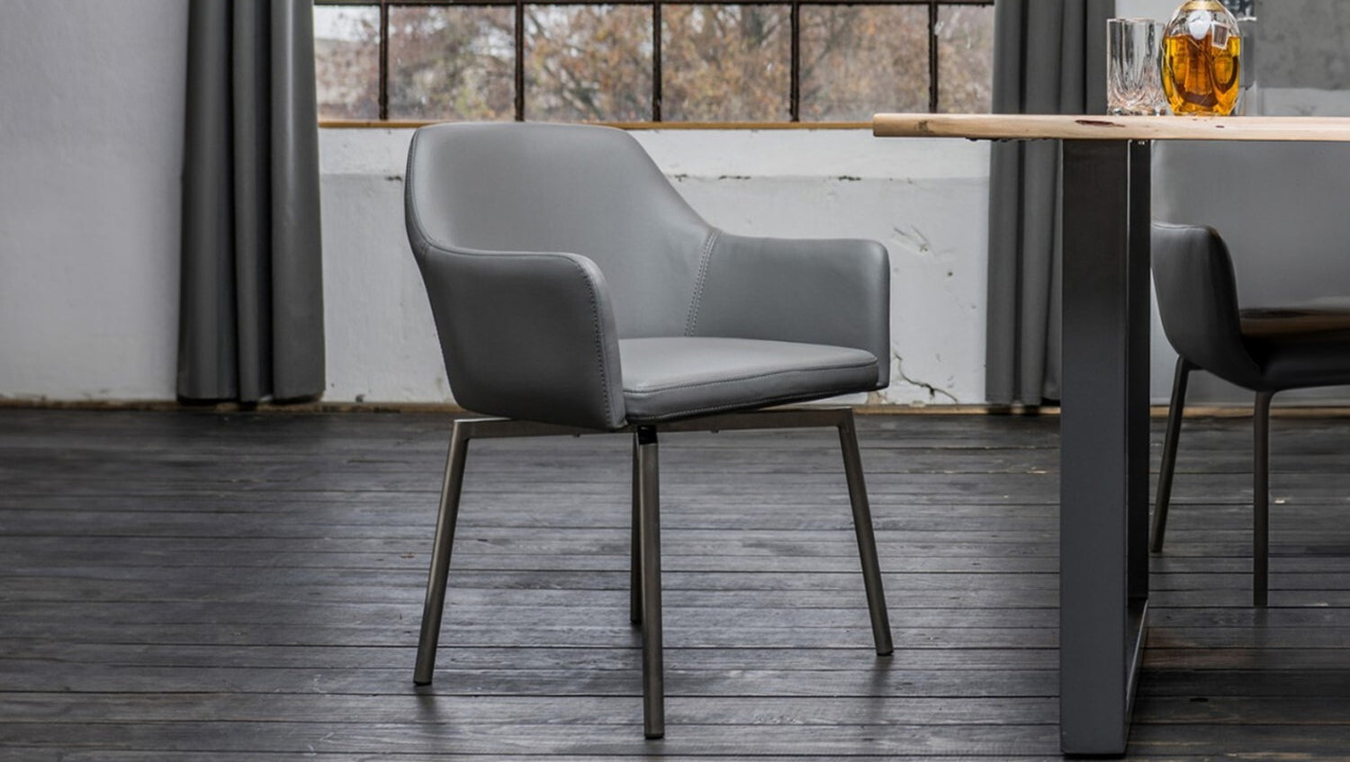 Estas sillas son 2a oportunidad de devoluciones de clientes, que tienen ciertos defectos menores y por lo tanto son ofrecidos por nosotros a un precio reducido. Los posibles defectos son: Arañazos en el armazón, marcas de presión, ligera suciedad y desviaciones de color en la tapicería, así como desgarros en la tela de los bajos. La silla Loui impresiona por su diseño sencillo y elegante. Esta silla de comedor combina a la perfección lo clásico y lo moderno. Gracias a su aspecto clásico pero moderno, la silla Loui puede integrarse en cualquier ambiente. El armazón de acero inoxidable armoniza a la perfección con el tapizado elegido y confiere a la silla un carácter moderno. Lo más destacado de la silla es que la carcasa del asiento tiene función giratoria. El tapizado de polipiel es fácil de cuidar y la suciedad puede eliminarse simplemente con un paño húmedo. La elección del tapizado hace que la silla con reposabrazos sea adecuada para cualquier ámbito de uso; ya sea en el comedor, la sala de conferencias o la sala de espera, la silla Loui destaca en todas partes.