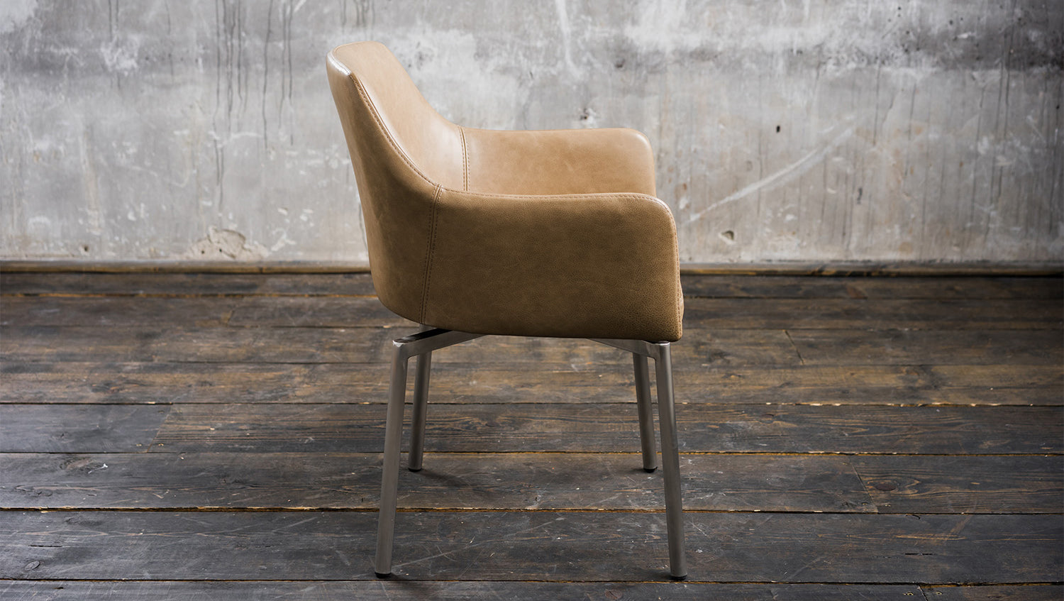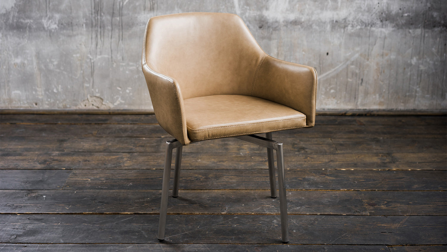 Esta silla es 2a oportunidad de una devolución de un cliente, que tiene ciertos defectos de menor importancia y por lo tanto es ofrecido por nosotros a un precio reducido. Los posibles defectos son: Arañazos en el armazón, marcas de presión, ligera suciedad y desviaciones de color en la tapicería, así como desgarros en la tela de los bajos. Por favor, eche un vistazo a las fotos de defectos directamente después de la foto principal. Sólo sirven para ilustrar posibles defectos. Se trata de imágenes de ejemplo generales y no representan el artículo en cuestión. El artículo no presenta necesariamente todos los defectos indicados. Las telas y colores de tapicería que aparecen en las imágenes de defectos tampoco se refieren a este artículo. La silla Loui impresiona por su diseño sencillo y elegante. Esta silla de comedor combina a la perfección lo clásico y lo moderno. Gracias a su aspecto clásico pero moderno, la silla Loui se integra perfectamente en cualquier ambiente. El armazón de acero inoxidable armoniza a la perfección con el tapizado elegido y confiere a la silla un carácter moderno. Lo más destacado de la silla es que la carcasa del asiento es giratoria. El tapizado de piel es fácil de cuidar y la suciedad se elimina fácilmente con un paño húmedo. La elección de la tapicería hace que la silla con reposabrazos sea adecuada para cualquier ámbito de uso; ya sea en el comedor, la sala de conferencias o la sala de espera, la silla Loui destaca en todas partes.