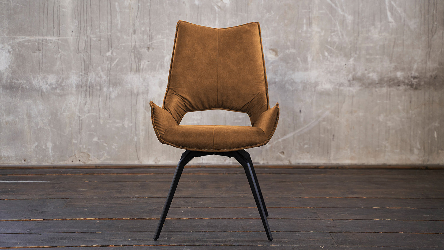 Estas sillas son productos B procedentes de devoluciones de clientes, que presentan ciertos defectos menores y por ello las ofrecemos a un precio reducido. Los posibles defectos son: Arañazos en el armazón, marcas de presión, ligera suciedad y desviaciones de color en la tapicería, así como desgarros en la tela de los bajos. La silla de comedor SIVO llama inmediatamente la atención por su interesante diseño. Tanto la carcasa del asiento, cómodamente tapizada, como las patas giratorias en ángulo tienen un diseño inusual. En la carcasa del asiento, que por lo demás es continua, hay un rebaje en la parte inferior del respaldo que completa su aspecto especial. La funda de tela de la silla giratoria es fácil de cuidar y muy agradable al tacto. La silla tapizada es ideal para el comedor o la zona de trabajo en casa, como silla en la sala de espera o como silla de reuniones en la oficina.