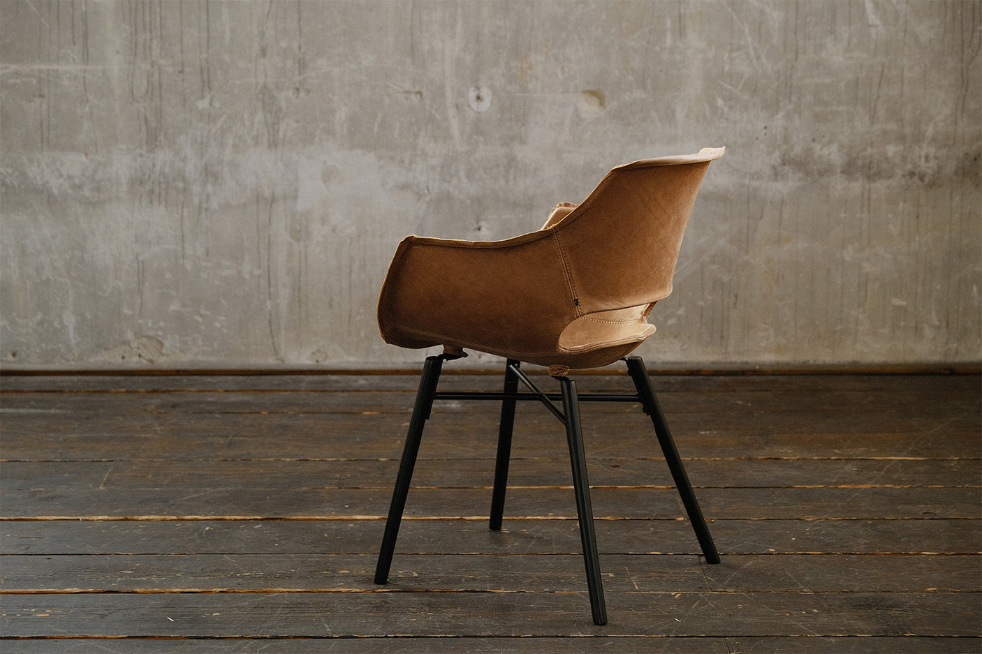 La silla de comedor ZAJA combina un diseño elegante con una gran comodidad de asiento. Esta moderna silla tapizada invita a quedarse. El cuero auténtico de alta calidad es resistente y fácil de cuidar. Las costuras abiertas acentúan el carácter industrial de la silla. Esta silla de mesa de comedor es ideal para distintos espacios. Ya sea en el escritorio o en el comedor, la silla ZAJA se integra armoniosamente en cualquier estancia. El robusto armazón metálico de aspecto vintage redondea el diseño. Disfrute de horas acogedoras con amigos y familiares. La silla de comedor de piel ZAJA enriquece cualquier salón. El diseño de la silla tapizada es atemporal y moderno. El acabado de alta calidad garantiza su durabilidad. Esta silla se convertirá en el lugar favorito de su hogar. El cuero garantiza un cómodo asiento. La combinación de cuero y metal hace de esta silla un mueble especial. Esta silla de comedor no sólo es cómoda, sino que también atrae todas las miradas. Las costuras abiertas combinan el aspecto industrial con la máxima comodidad.
