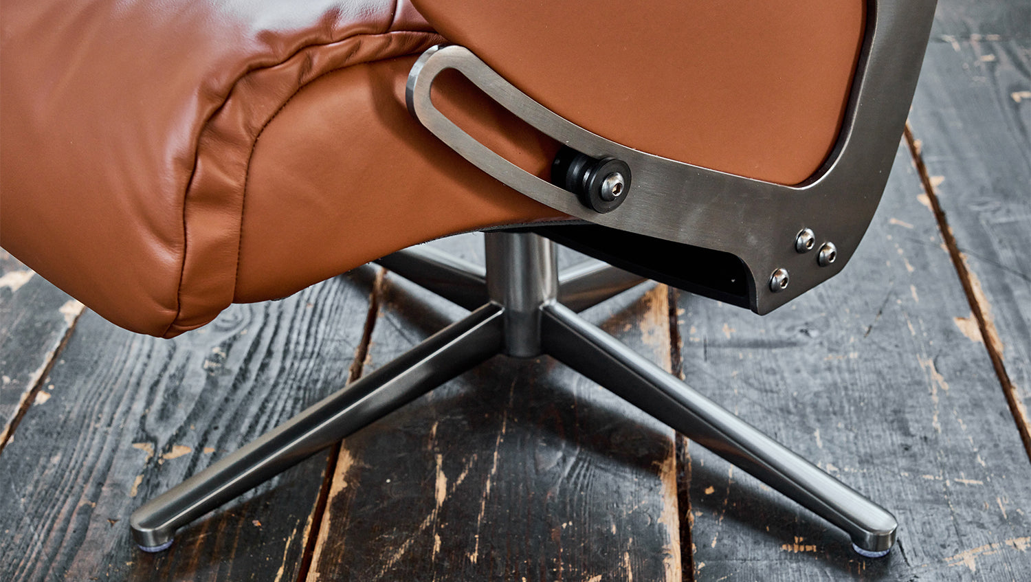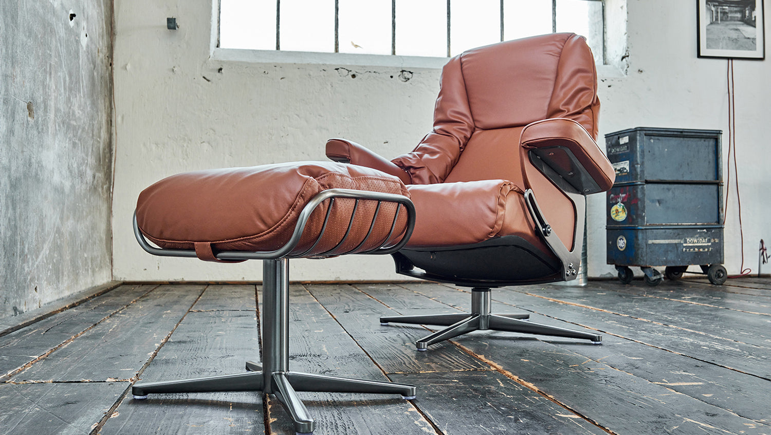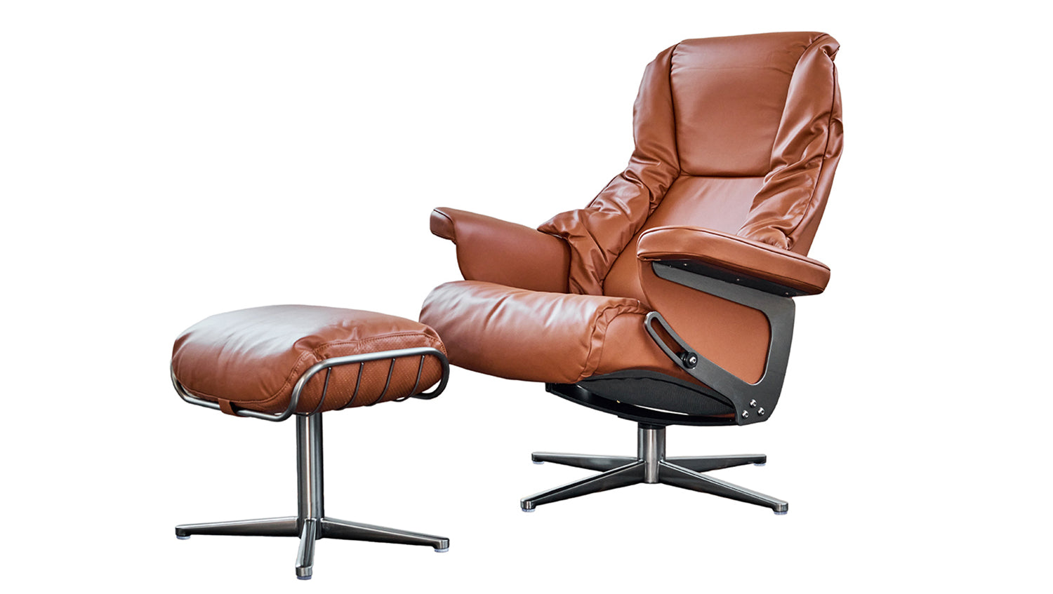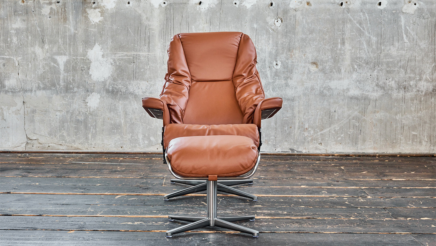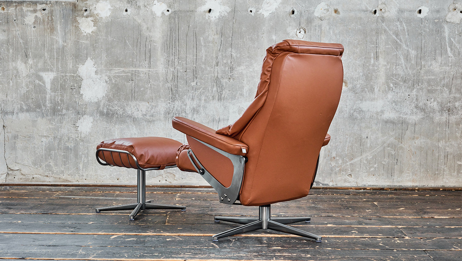 2a oportunidad KAWOLA MODO sillón reclinable giratorio de cuero marrón con Puf