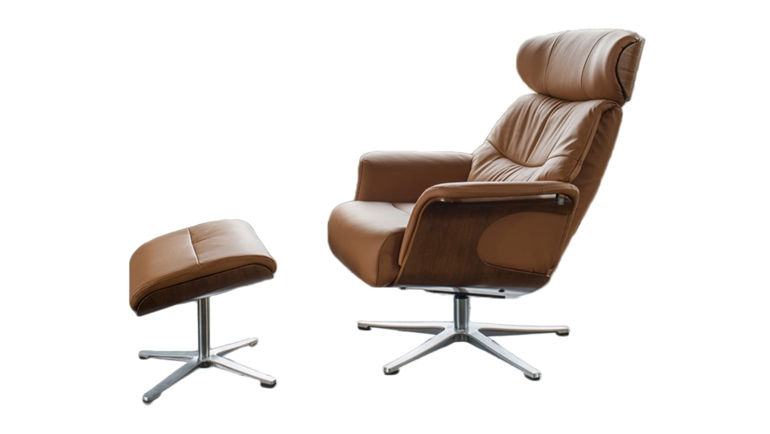 Producto de 2a oportunidad Sillón KAWOLA TOSAR Sillón relax giratorio de cuero marrón con Puf
