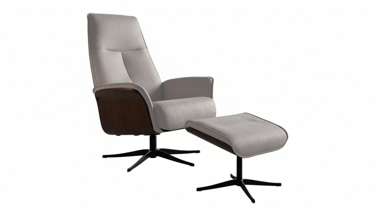 KAWOLA sillón reclinable FERREIRA sillón giratorio cuero gris con Puf