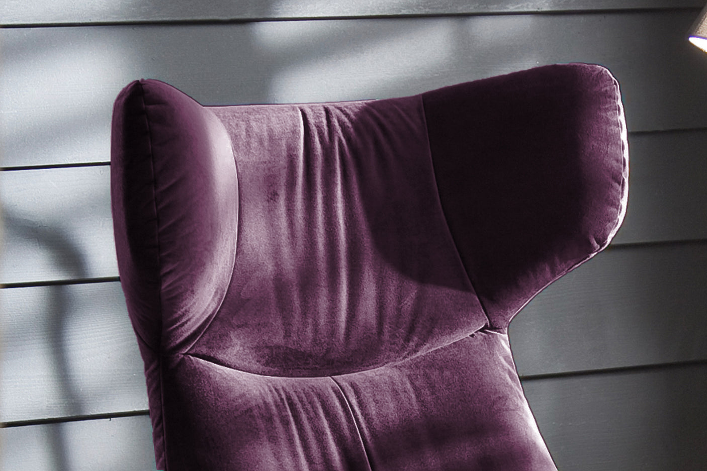 KAWOLA sillón LOTTE sillón de terciopelo púrpura con Puf