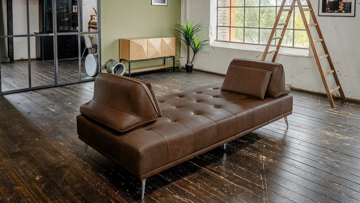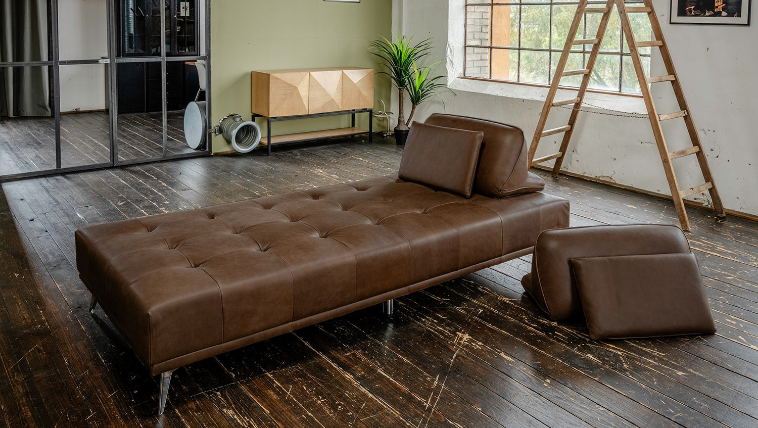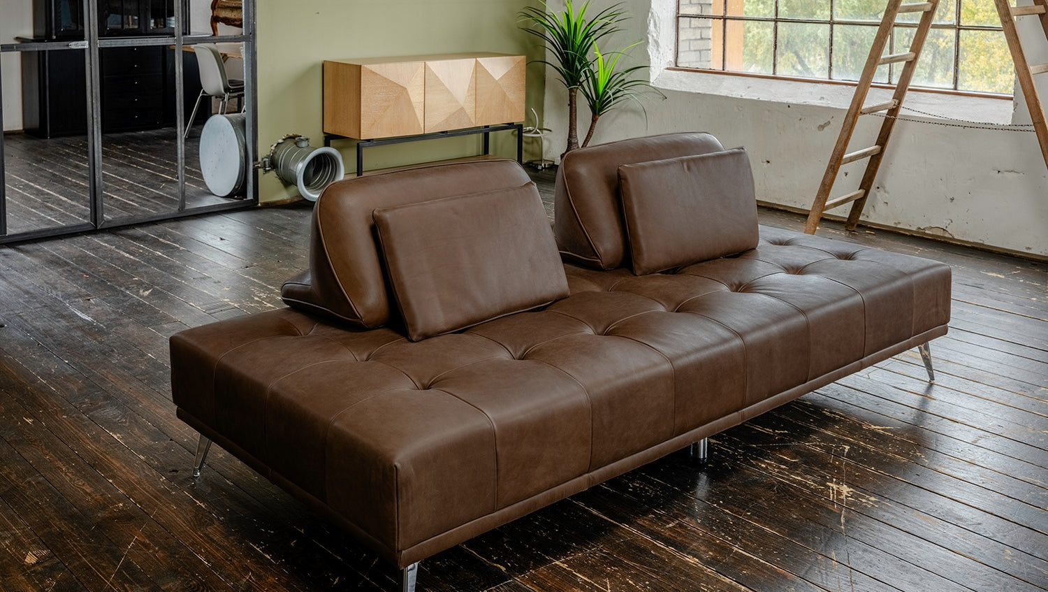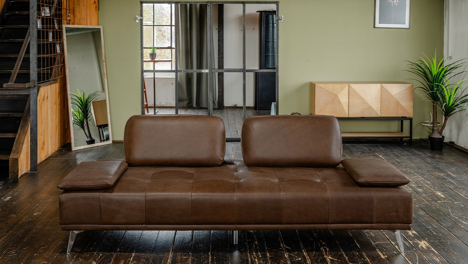 El sofá WIOLO de KAWOLA se caracteriza por el elegante acolchado del asiento, la tapicería de piel de alta calidad y las patas de metal con filigranas. Pero este mueble no es sólo atractivo a la vista. El sofá cama WIOLO ofrece diversas posibilidades de uso: Por un lado, puede utilizarse como un elegante sofá de 2,5 plazas. Lo más destacado en este caso es que los Cojines respaldo se pueden distribuir y desplazar individualmente según se desee. Esto le permite adoptar la postura más cómoda para sentarse o reclinarse. El sofá también puede utilizarse como sofá cama retirando los cojines del respaldo. No importa dónde ni cómo, el sofá cama WIOLO aporta elegancia y confort a cualquier habitación. La piel de vacuno de poros abiertos de alta calidad impresiona por su aspecto natural. Al estar mínimamente tratada, la superficie auténtica permanece completamente intacta, con todas sus finas vetas, ligeros pliegues y estructuras individuales. Estas características no son defectos, sino una expresión de autenticidad y confieren a cada funda su propio carácter. Otra ventaja de esta piel es su transpirabilidad: la estructura de poros abiertos permite que el material intercambie aire y humedad de forma óptima. Como resultado, su tacto es siempre agradable -fresco en verano, cálido en invierno- y se adapta perfectamente a la temperatura ambiente, lo que hace que cada mueble revestido con esta piel sea realmente único. La combinación de un aspecto natural, un agradable clima de asiento y una calidad duradera hacen de esta piel de vaca un material de tapicería especialmente valioso y con un fuerte carácter.