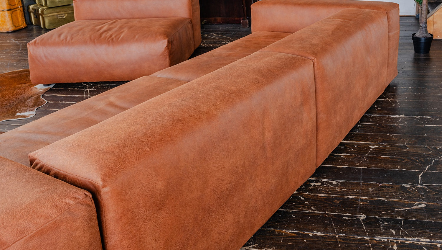 • Tejido de fibra de cuero duradero fabricado a partir de fibras de cuero recicladas para conseguir un aspecto de cuero auténtico