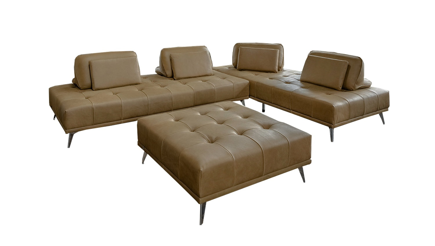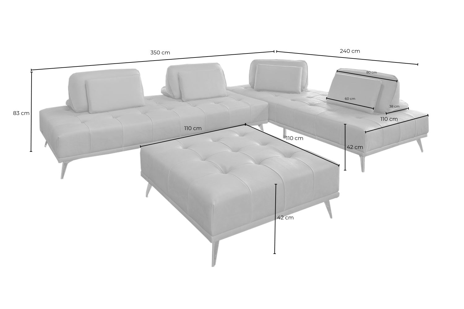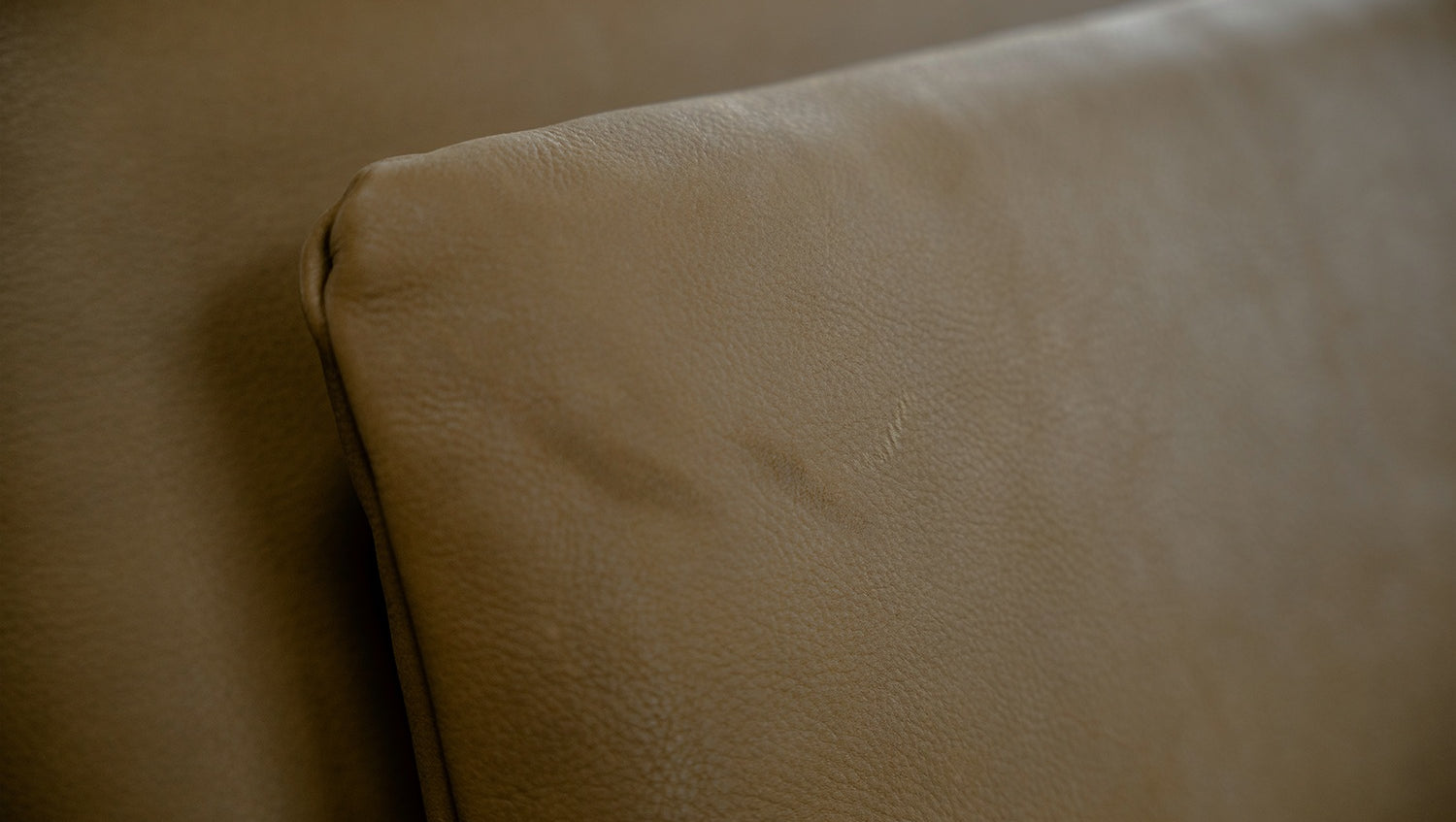Elegante acolchado en el asiento, tapicería de cuero de alta calidad y patas de metal con filigranas: todo esto caracteriza al sofá WIOLO de KAWOLA. Pero este mueble no es sólo atractivo a la vista. El sofá esquinero WIOLO ofrece diversas posibilidades de uso: Por un lado, puede utilizarse, junto con el Puf, como un elegante sofá esquinero. Lo más destacado en este caso es que los Cojines respaldo se pueden distribuir y desplazar individualmente según se desee. Esto le permite adoptar la postura más cómoda para sentarse o reclinarse. Por otro lado, retirando los cojines del respaldo y juntando los módulos, el sofá también puede utilizarse como sofá cama grande (L/A: 240x220cm) o, por separado, como dos zonas reclinables más pequeñas (L/A: 240x110cm). No importa dónde ni cómo, el sofá cama WIOLO aporta elegancia y confort a cualquier habitación, además de ser increíblemente práctico. La piel de vacuno de poros abiertos de alta calidad impresiona por su aspecto natural. Al estar mínimamente tratada, la superficie auténtica permanece completamente intacta, con todas sus finas vetas, ligeros pliegues y estructuras individuales. Estas características no son defectos, sino una expresión de autenticidad y confieren a cada funda su propio carácter. Otra ventaja de esta piel es su transpirabilidad: la estructura de poros abiertos permite que el material intercambie aire y humedad de forma óptima. Como resultado, su tacto es siempre agradable -fresco en verano, cálido en invierno- y se adapta perfectamente a la temperatura ambiente, lo que hace que cada mueble revestido con esta piel sea realmente único. La combinación de un aspecto natural, un agradable clima de asiento y una calidad duradera hacen de esta piel de vaca un material de tapicería especialmente valioso y con un fuerte carácter.