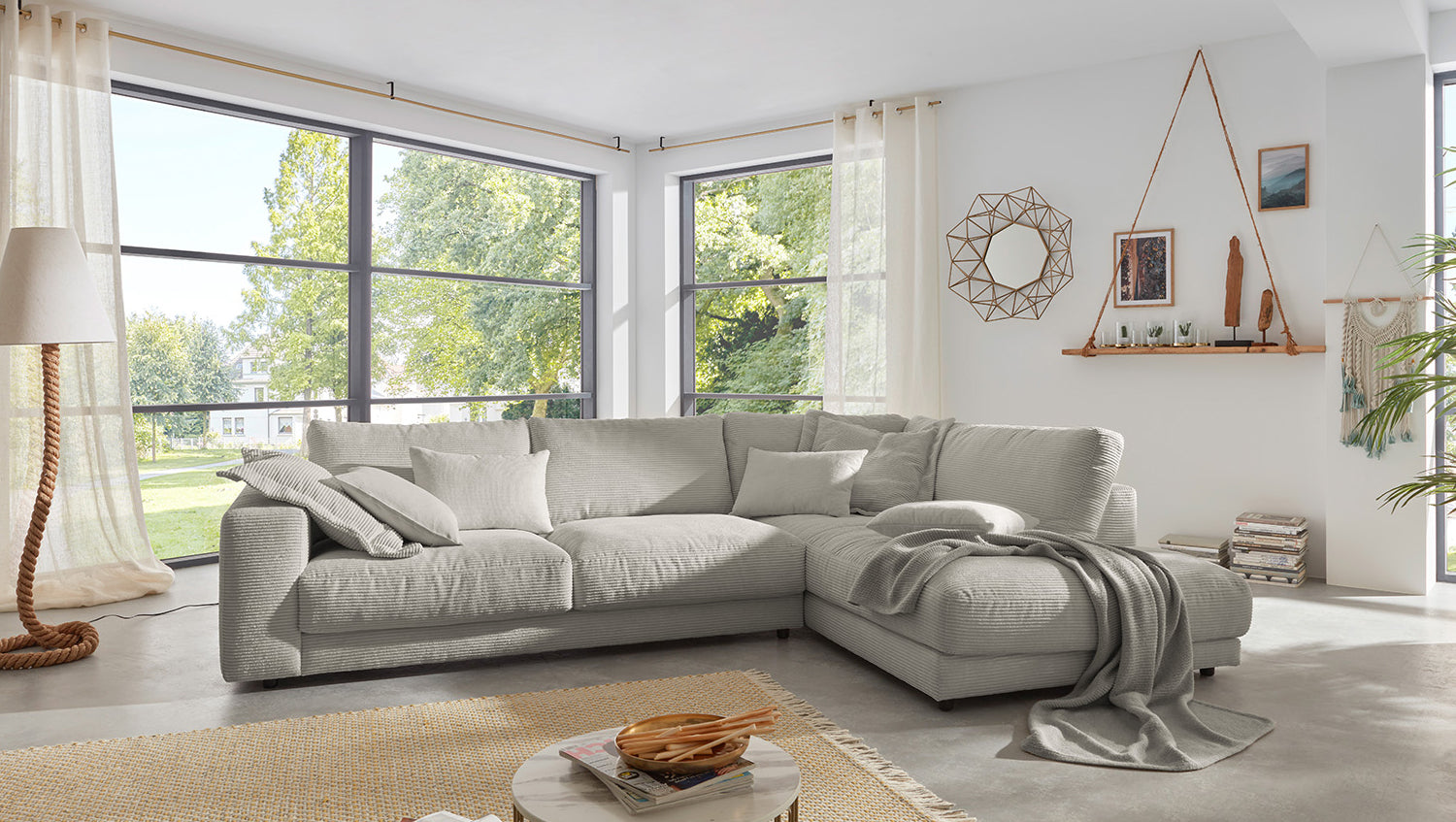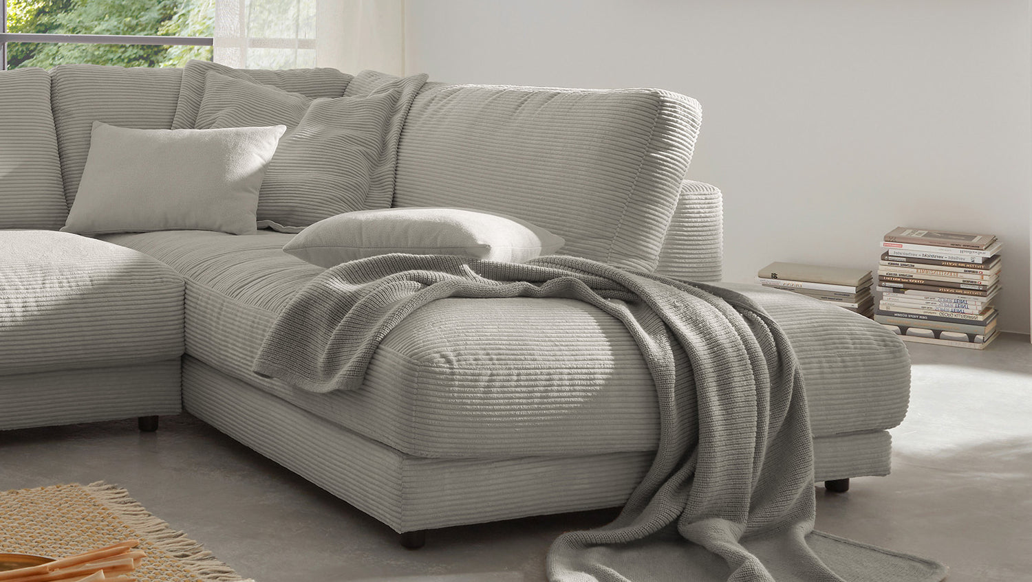 Se trata de artículos de 2a oportunidad, que ofrecemos a un precio reducido. Los defectos específicos de este artículo se documentan detalladamente en las imágenes del producto que aparecen justo después de la imagen principal y también se describen en los "Detalles del producto" (véase más abajo). Estos artículos proceden de devoluciones de clientes y, por tanto, ya no están disponibles en su embalaje original. Puede haber otros fallos o defectos no detectados. El sofá esquinero MADELINE de KAWOLA impresiona por su excelente comodidad de asiento, que se consigue gracias a un tapizado extremadamente desenfadado y que invita a quedarse y relajarse. El tapizado se adapta a la forma del cuerpo; las impresiones del asiento y las ondulaciones de las fundas son típicas del producto. El asiento consta de una base de muelles con muelles ondulados de acero de elasticidad permanente y una funda superior, así como cojines de asiento sueltos de espuma de poliuretano. El asiento y el respaldo están tapizados con un relleno de alta calidad que contiene una mezcla de plumas. La moderna funda de tela de pana confiere al Sofá extra ancho una elegancia atemporal. Si quiere dar a su salón un toque extraordinario, el sofá MADELINE es sin duda la elección adecuada para usted.