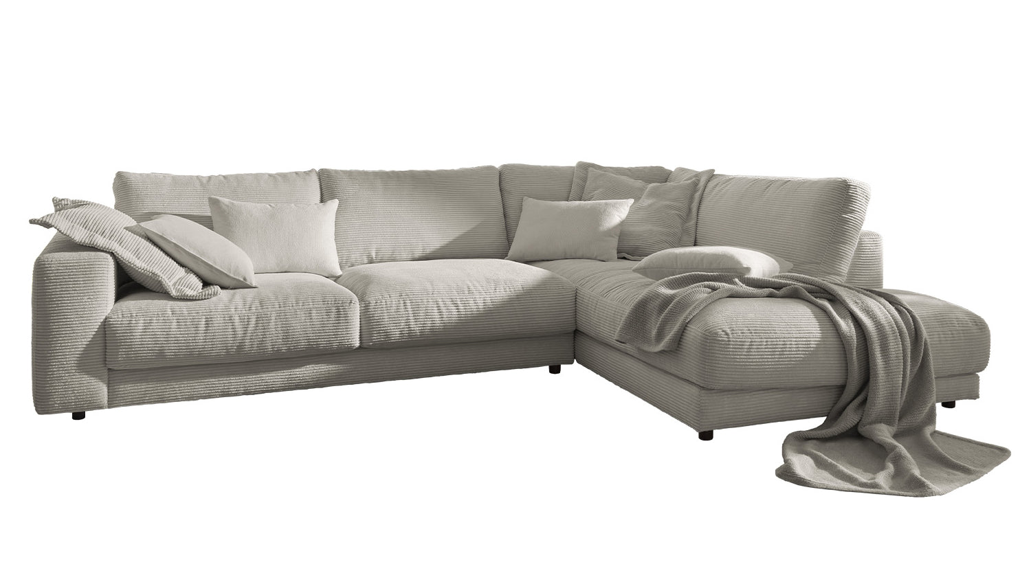 2a oportunidad KAWOLA Sofá MADELINE Pana sofá de la esquina de piedra gris Recamiere derecha