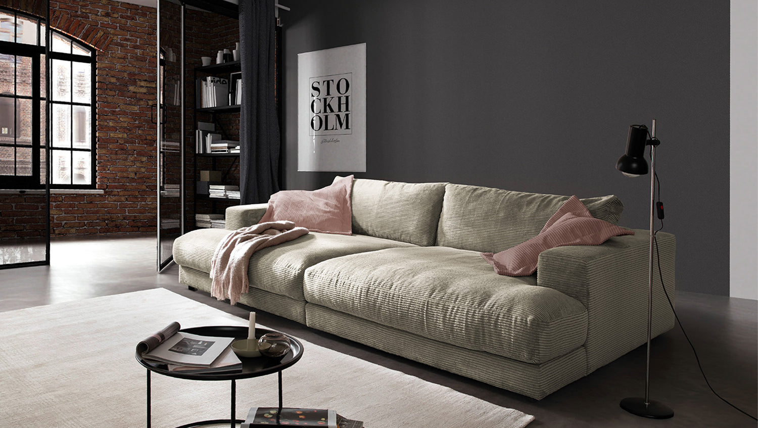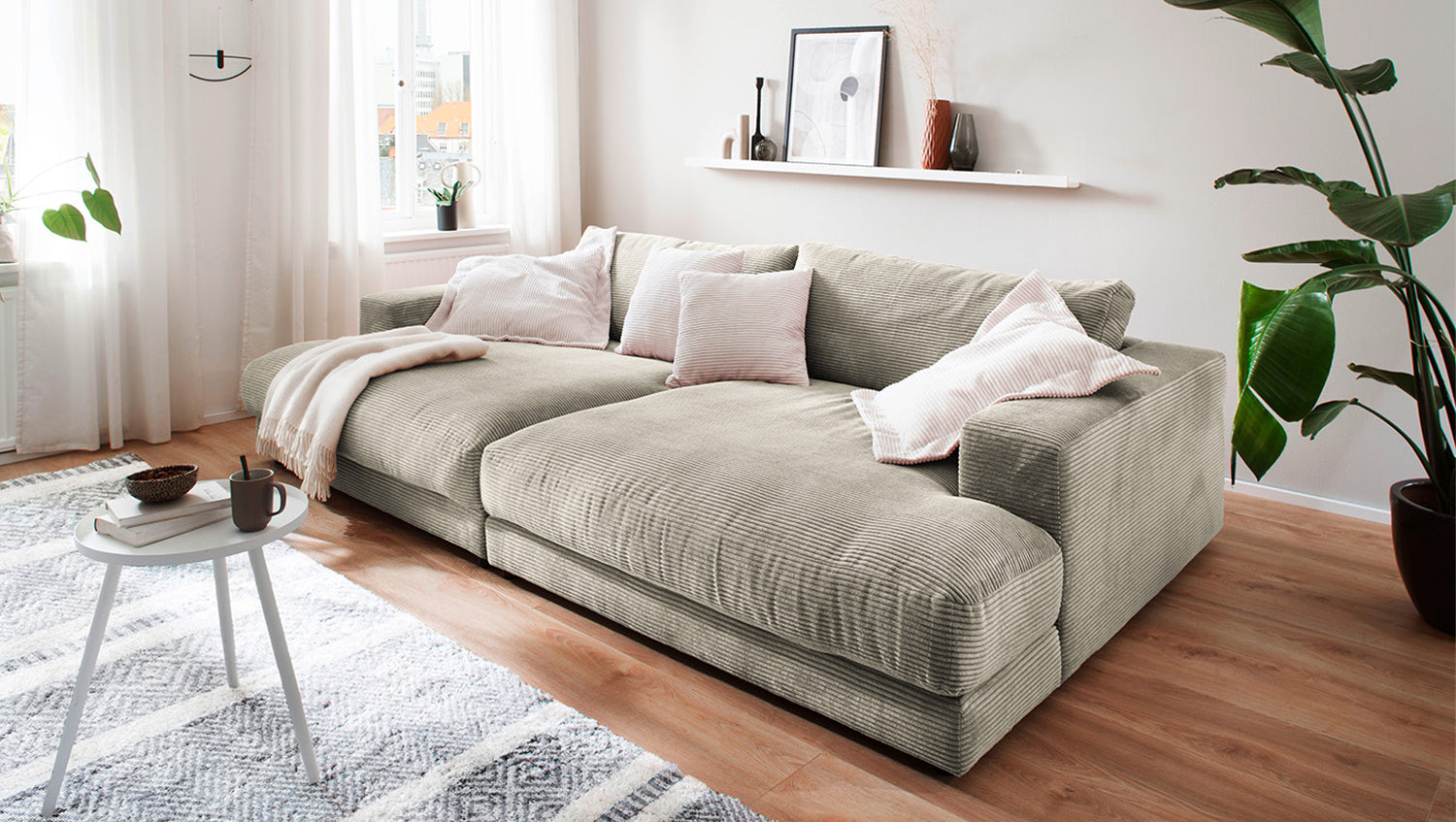 2a oportunidad KAWOLA Sofá extra ancho MADELINE Pana gris piedra
