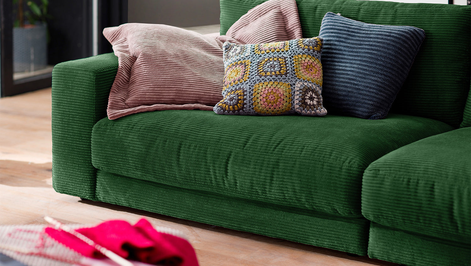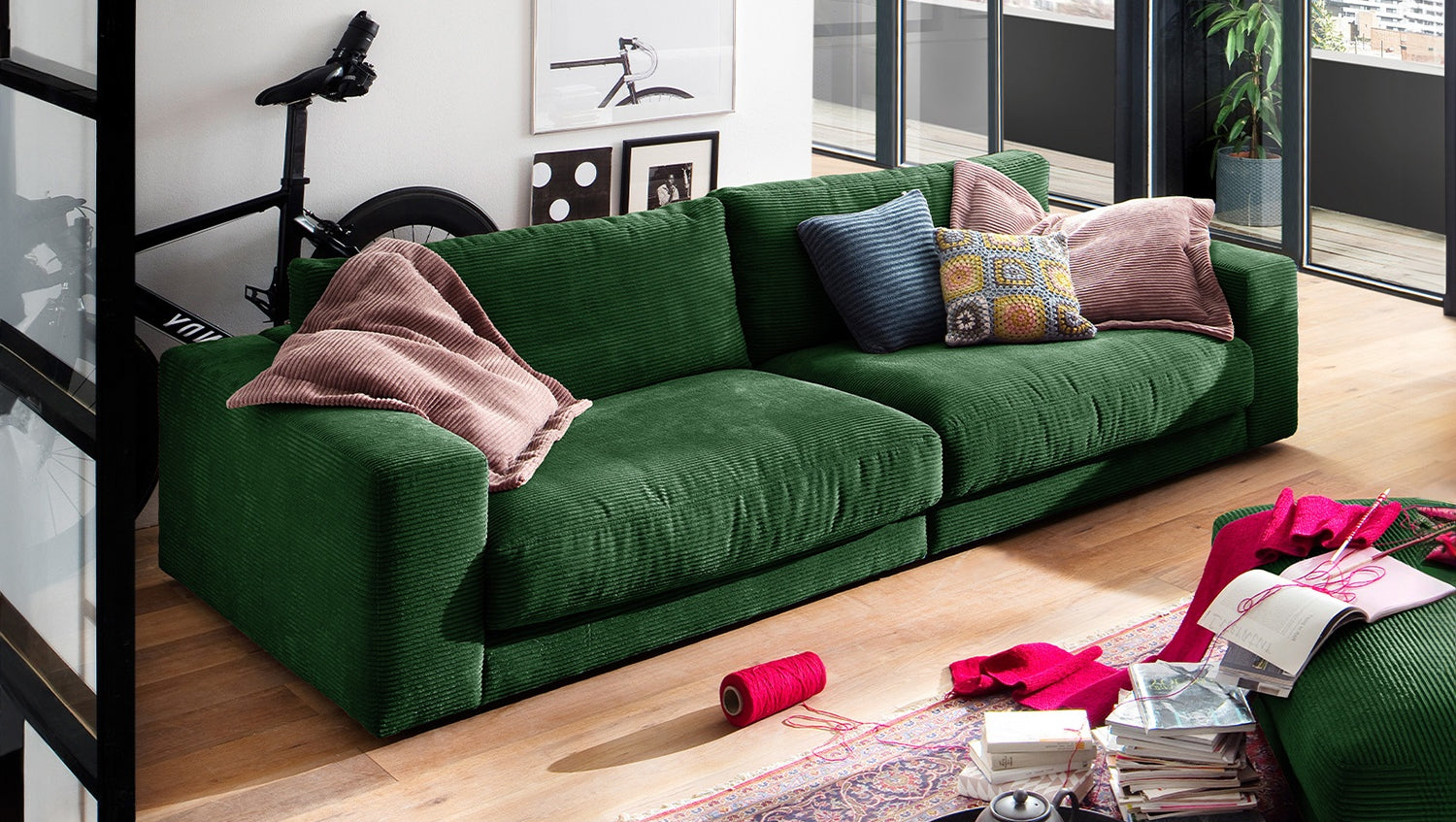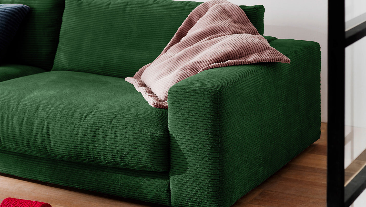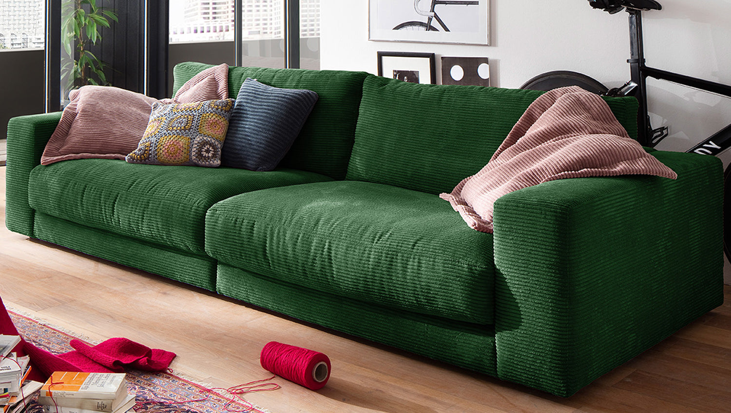 2a oportunidad KAWOLA Sofá MADELINE 3 plazas Pana esmeralda