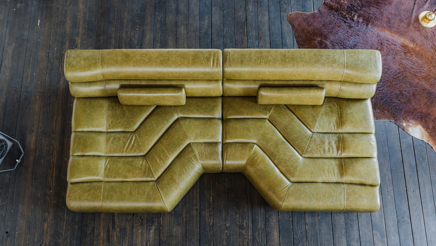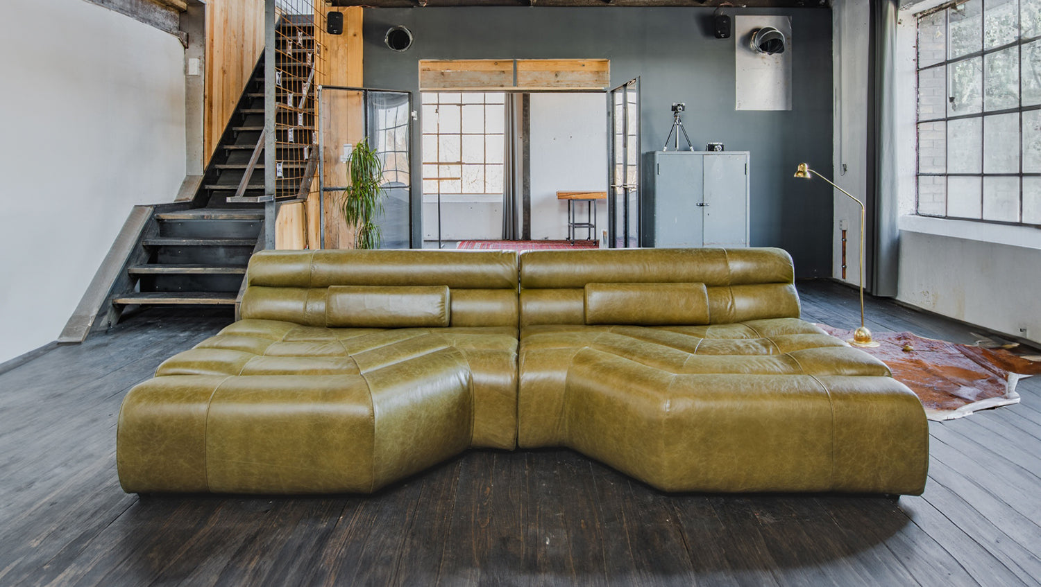 2a oportunidad Sofá en forma de U TARA Sofá en forma de U de cuero verde oliva con cojines