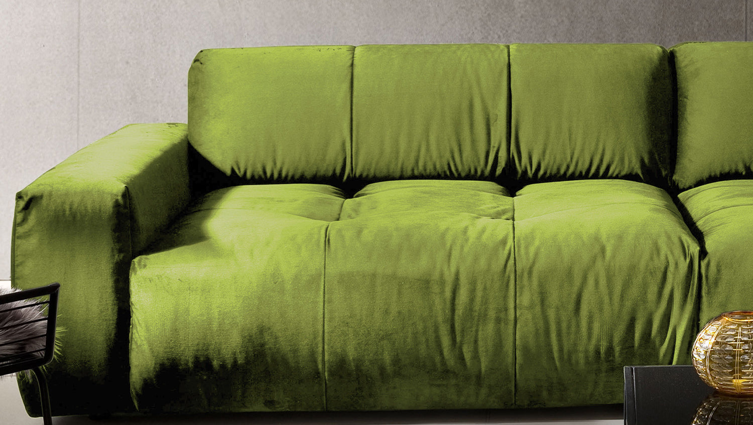 2a oportunidad KAWOLA Sofá extra ancho PALACE 3 plazas con ajuste de la profundidad del asiento Terciopelo verde
