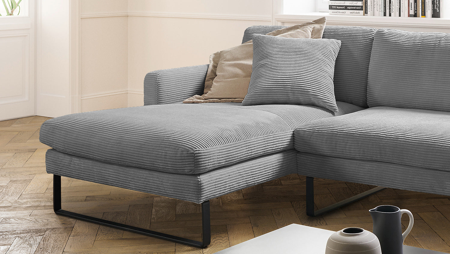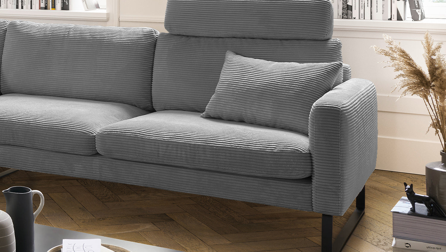 Se trata de artículos de 2a oportunidad, que ofrecemos a un precio reducido. Los defectos específicos de este artículo se documentan detalladamente en las imágenes del producto directamente después de la imagen principal y también se describen en los "Detalles del producto" (véase más abajo). Estos artículos proceden de devoluciones de clientes y, por lo tanto, ya no están disponibles en su embalaje original. Puede haber otros fallos o defectos no detectados. El sofá esquinero RICARDA de KAWOLA combina el diseño clásico con la modernidad funcional y se integra perfectamente en cualquier interior. Sus formas suaves y la moderna tapicería de tela Pana confieren al sofá una elegancia atemporal. El complejo tapizado garantiza la máxima comodidad de asiento y se adapta a la forma del cuerpo gracias a su diseño desenfadado. Los cojines sueltos del asiento están formados por capas y coordinados en diferentes grosores y durezas. El sofá también está equipado con cojines de cámara de alta calidad. Para evitar que el material de relleno se comprima, estos Cojines respaldo deben sacudirse después de cada uso. Hay correas de velcro bajo los cojines del asiento para un mejor apoyo. En resumen: ¡el sofá RICARDA no deja nada que desear! Cualquiera que sea la ocasión - todos encontrarán aquí un lugar para relajarse... NOTA IMPORTANTE Cuando son nuevas, las fundas muestran un pronunciado patrón ondulado, que es intencionado debido al diseño, modelo y construcción. La tapicería se adaptará a la forma del cuerpo y la firmeza del asiento disminuirá ligeramente. Las ligeras diferencias en la firmeza del asiento de los grupos complementarios se deben al diseño y, por lo tanto, no son motivo de queja.