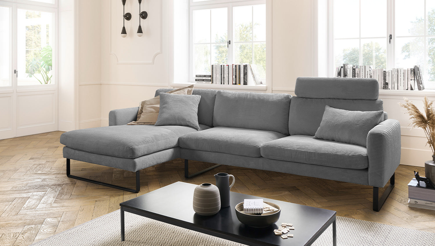 2a oportunidad KAWOLA Sofá RICARDA Pana sofá de la esquina gris Recamiere izquierda