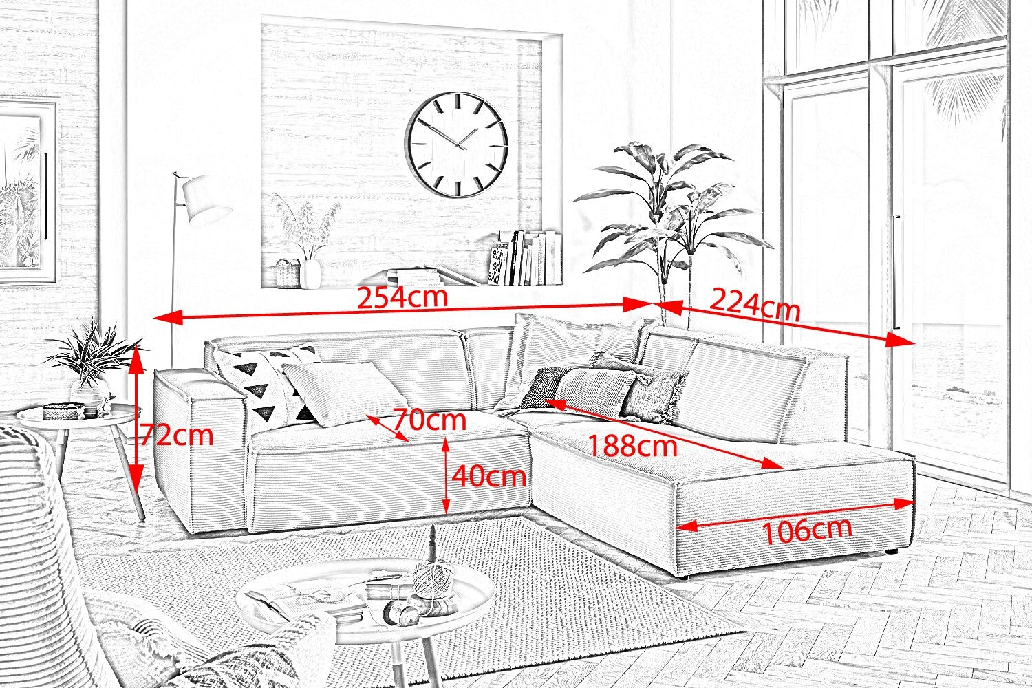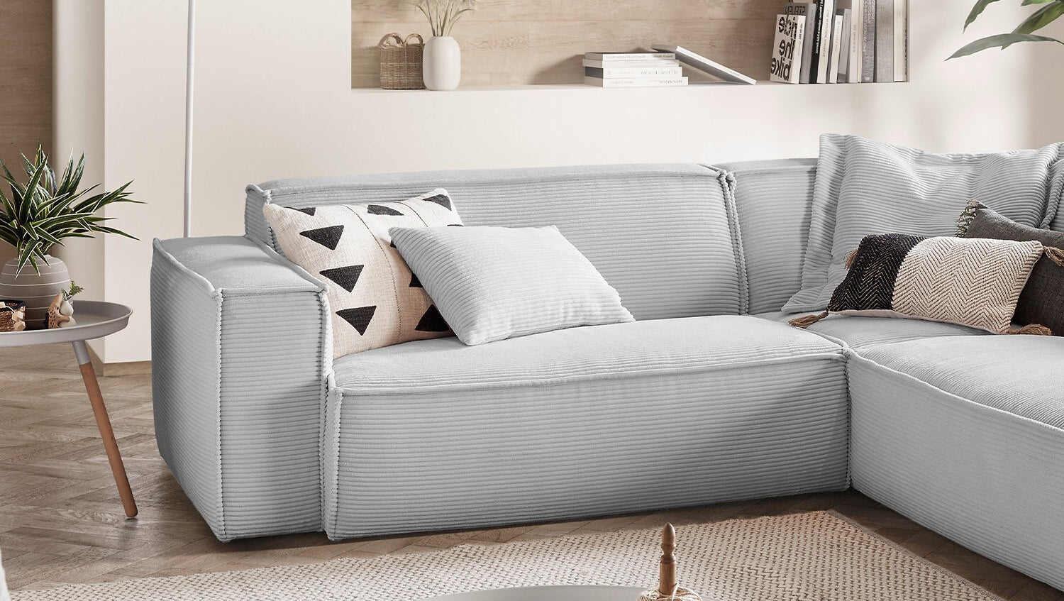 Ofrecemos estos artículos de 2a oportunidad a un precio reducido. Los defectos específicos se documentan con precisión en las imágenes y detalles del producto. Tenga en cuenta que estos artículos proceden de devoluciones de clientes y ya no están disponibles en su embalaje original. El sofá esquinero SAMU de KAWOLA impresiona por su extraordinaria comodidad de asiento, que se debe a la tapicería extremadamente desenfadada y que invita a quedarse y relajarse. Su forma moderna y urbana confiere al sofá un aspecto inconfundible y ofrece espacio suficiente para pasar veladas acogedoras. Con su diseño atemporal, se integra a la perfección en cualquier ambiente y también destaca en la habitación. Si quiere dar un toque original a su salón, el sofá SAMU es sin duda la elección perfecta.