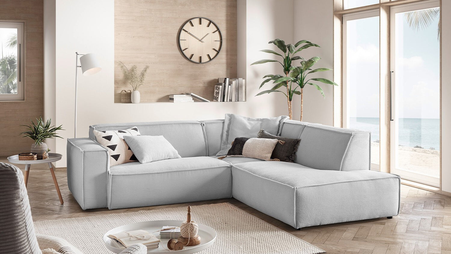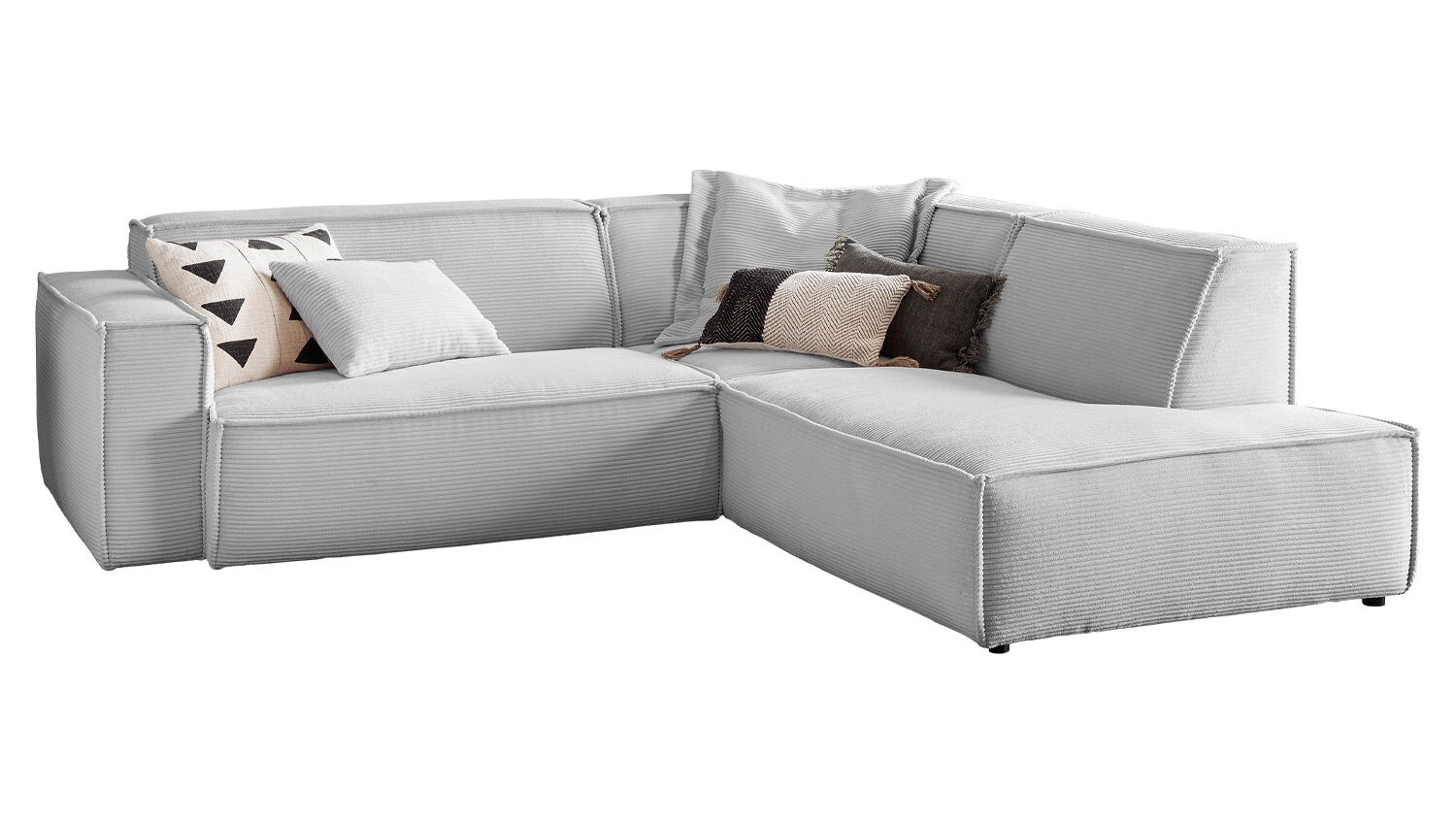 2a oportunidad KAWOLA Sofá SAMU Pana sofá de esquina gris claro Recamiere derecha