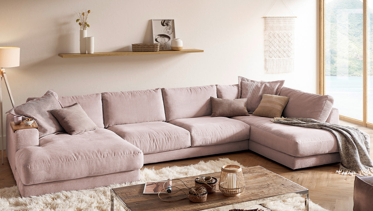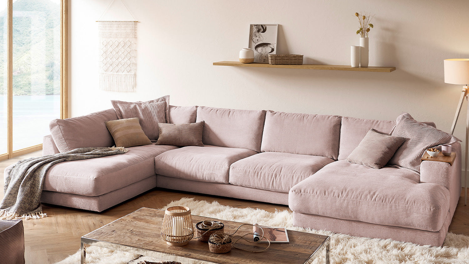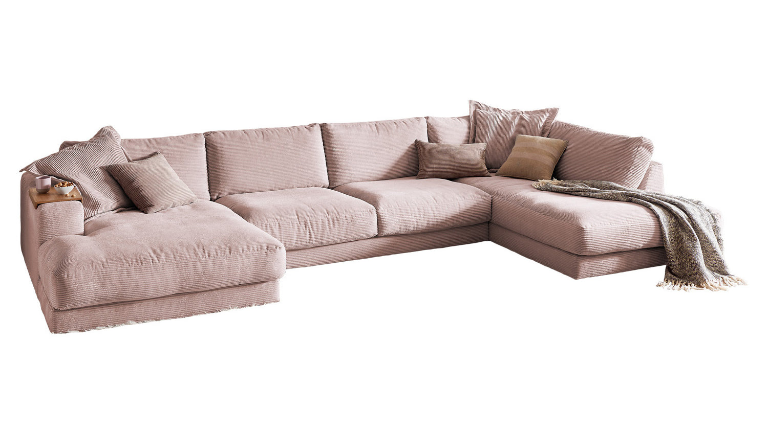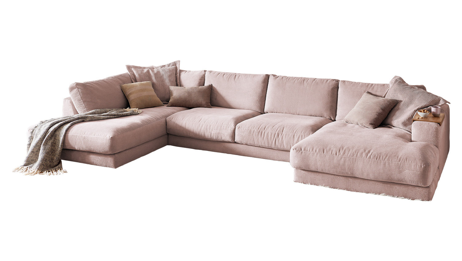 KAWOLA Sofá MADELINE en forma de U Pana rosa