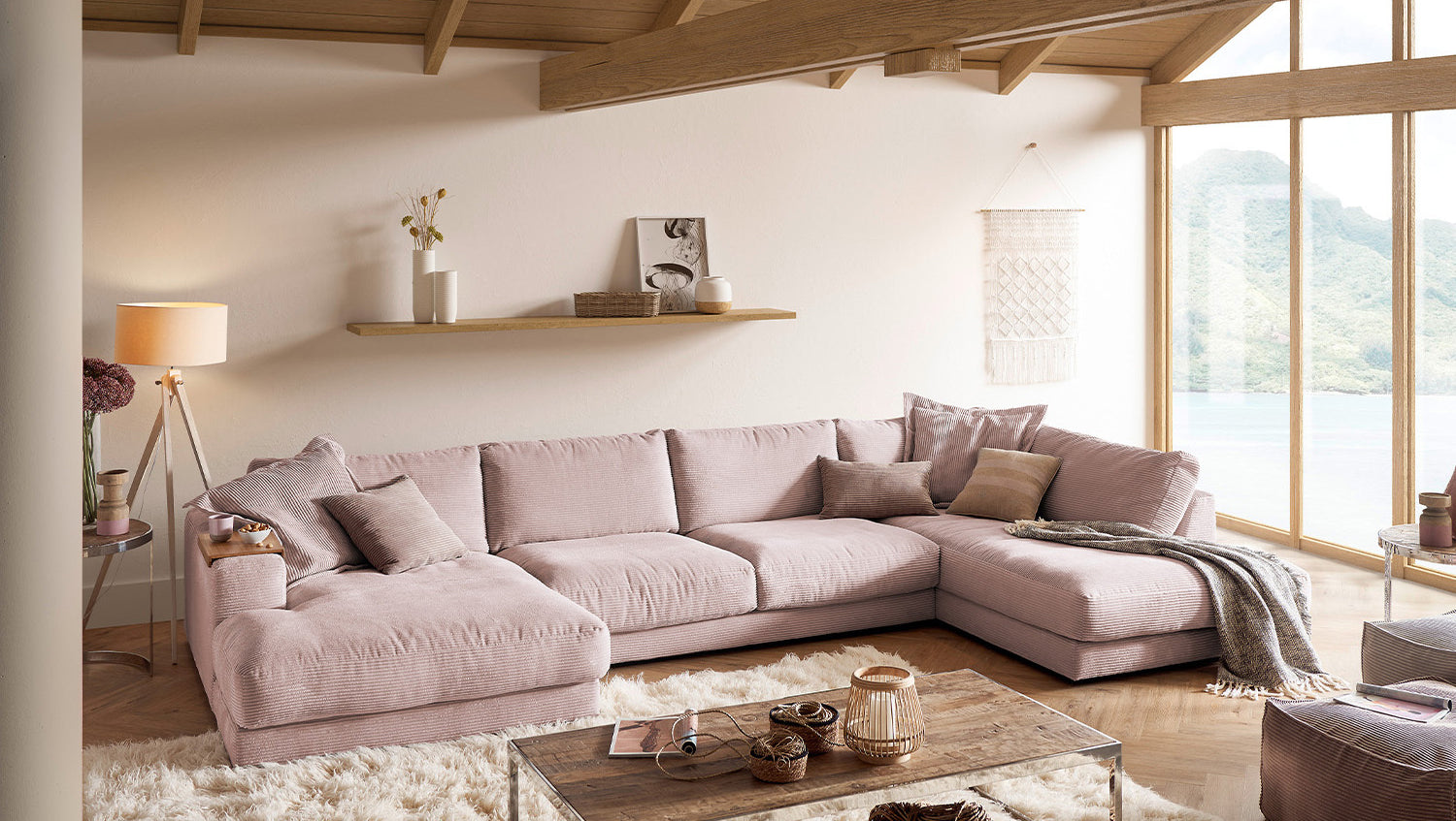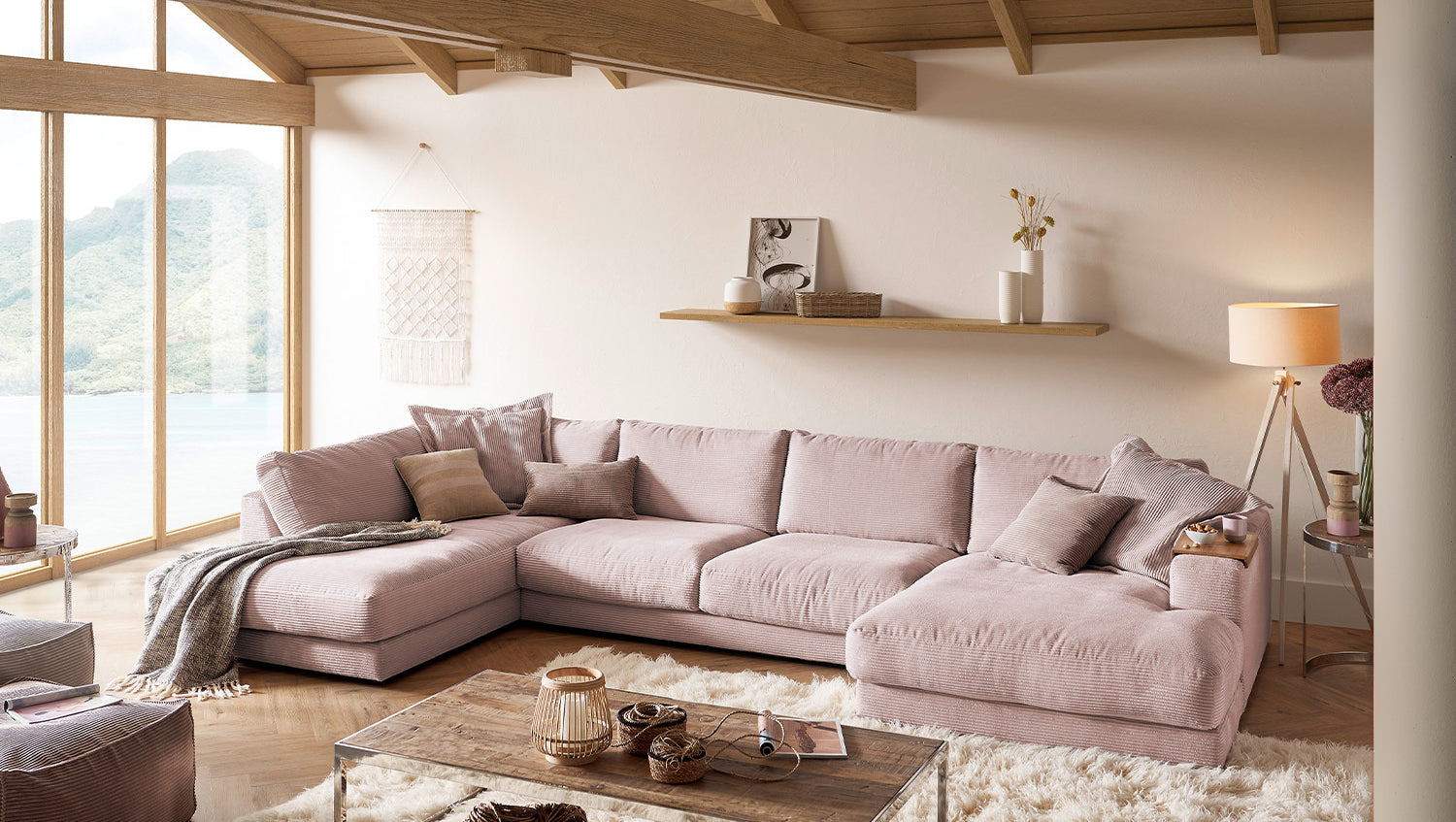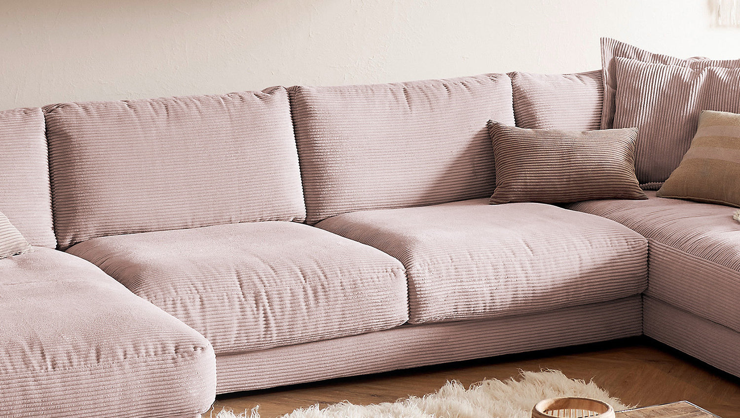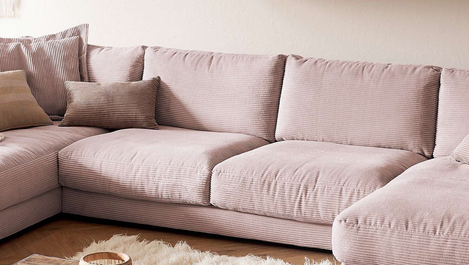 KAWOLA Sofá MADELINE en forma de U Pana rosa