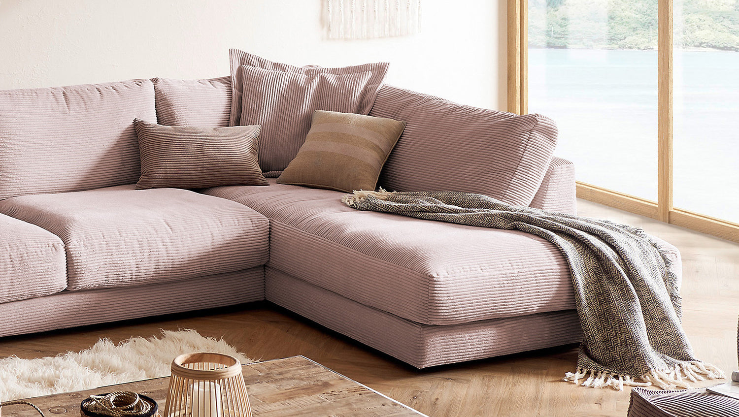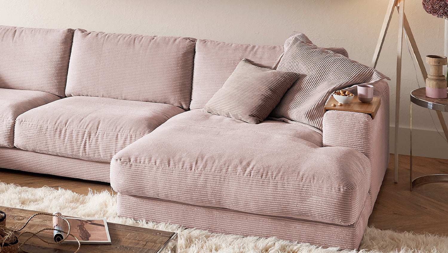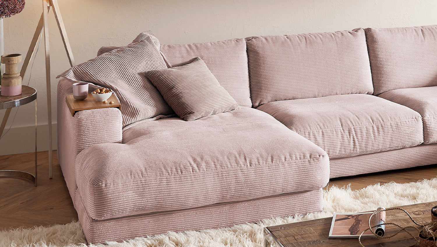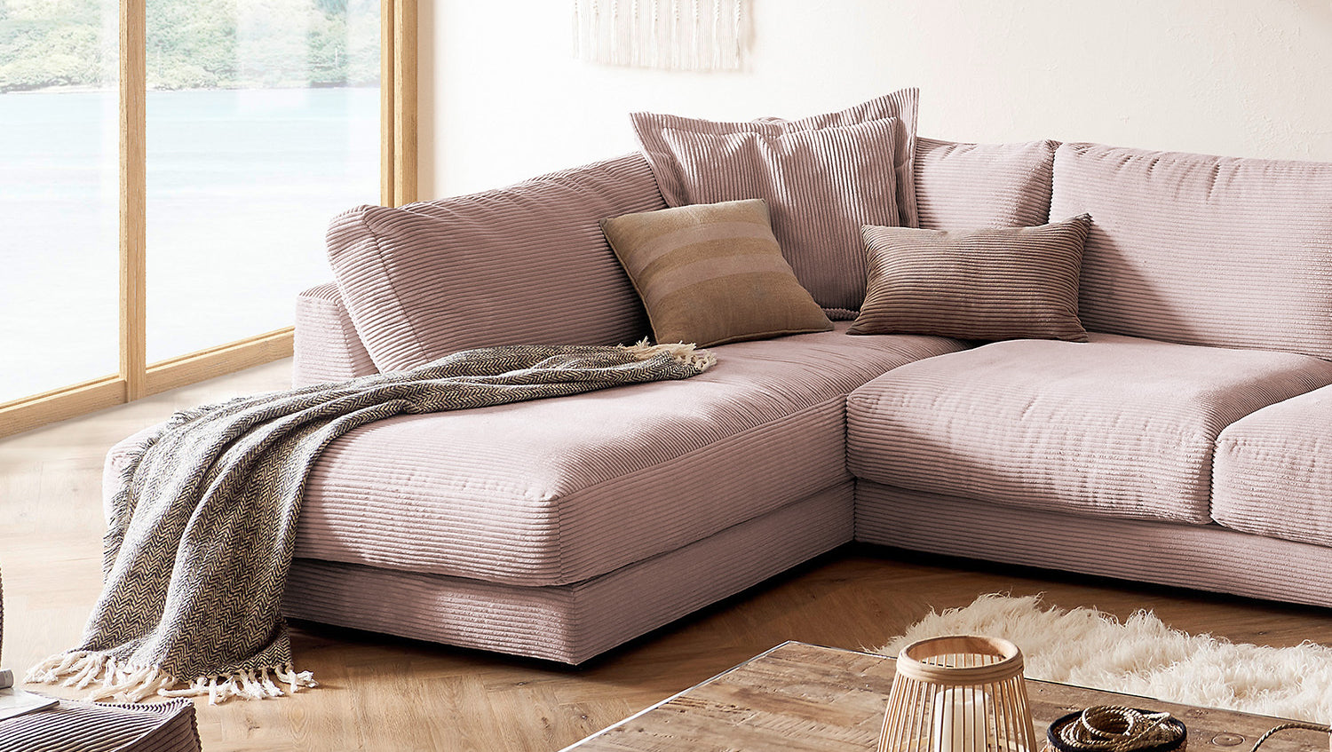 KAWOLA Sofá MADELINE en forma de U Pana rosa