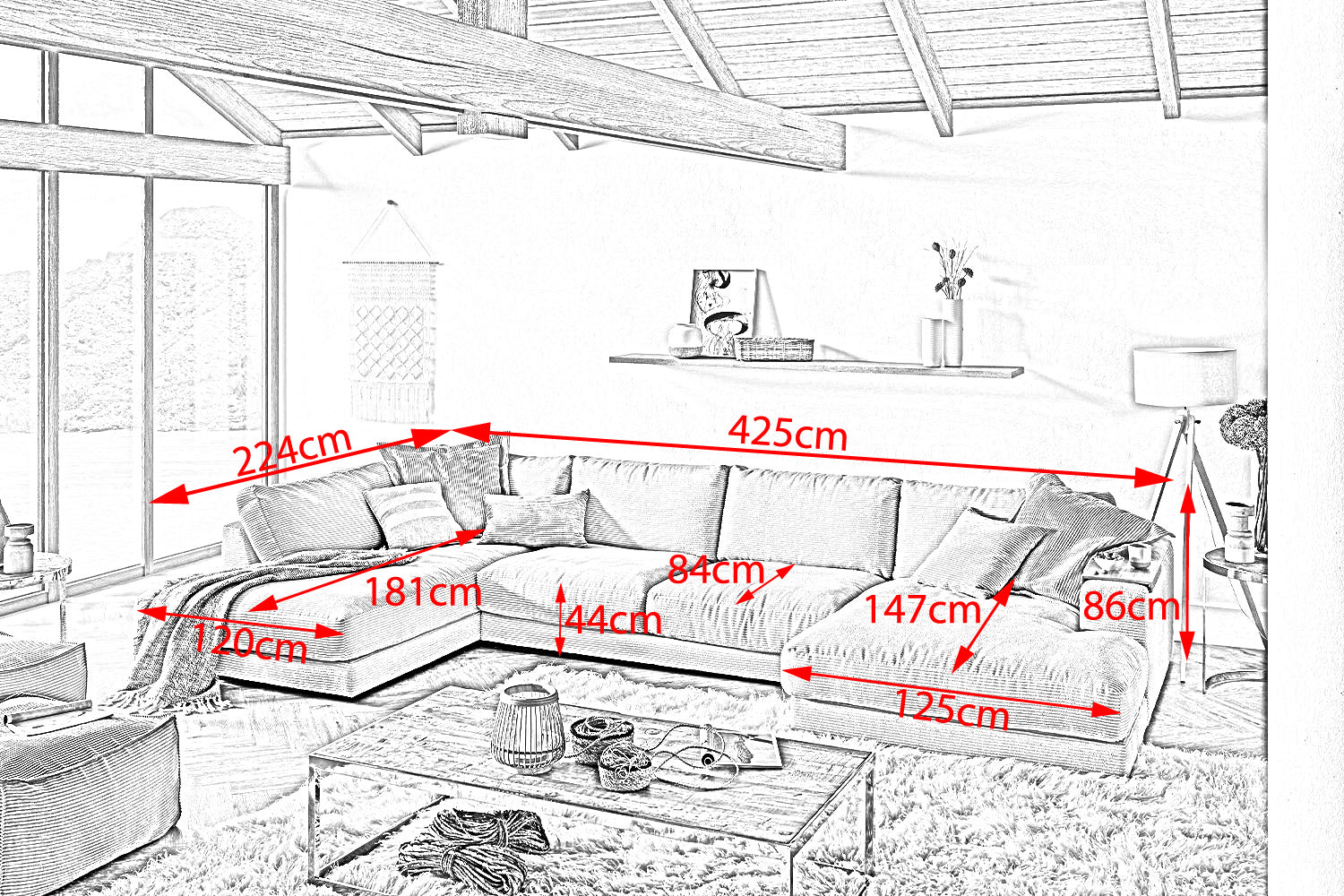 El Sofá en forma de U de KAWOLA MADELINE impresiona por su extraordinaria comodidad de asiento, que se debe a la tapicería extremadamente desenfadada e invita a quedarse y relajarse. Su forma moderna y urbana confiere al sofá un aspecto inconfundible y ofrece espacio suficiente para pasar veladas acogedoras. Con su diseño atemporal, se integra a la perfección en cualquier ambiente y también destaca en la habitación. Si quiere dar a su salón un toque extraordinario, el sofá MADELINE es sin duda la elección adecuada para usted. Instrucciones de cuidado Pana: Debe aspirar el sofá con regularidad, preferiblemente con un cepillo suave. Utilice un producto de limpieza suave y un paño húmedo para eliminar las manchas. Utilice muy poca agua al limpiar y deje que la funda se seque completamente antes de usarla. Evite la luz solar directa para evitar que se decolore.