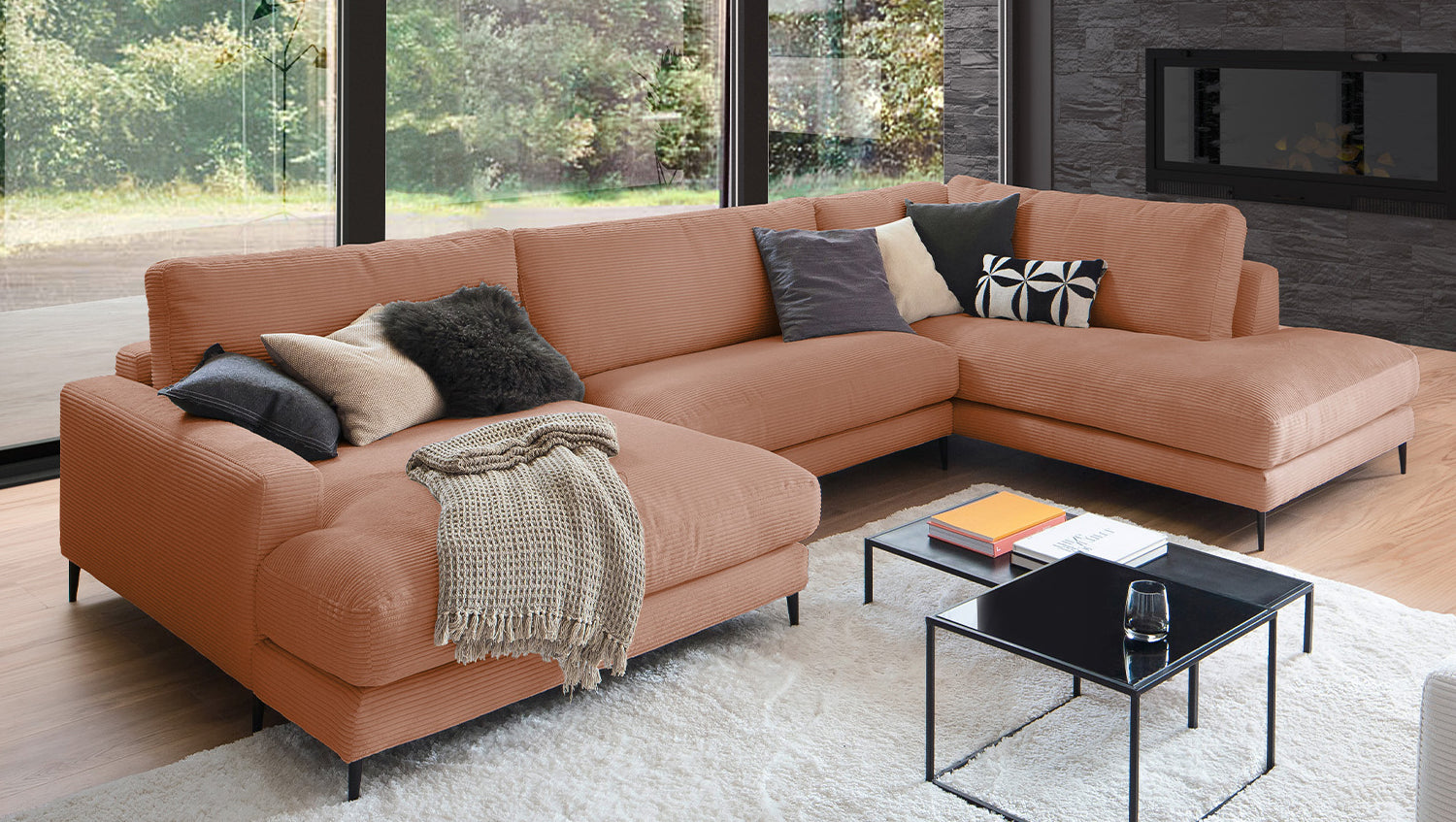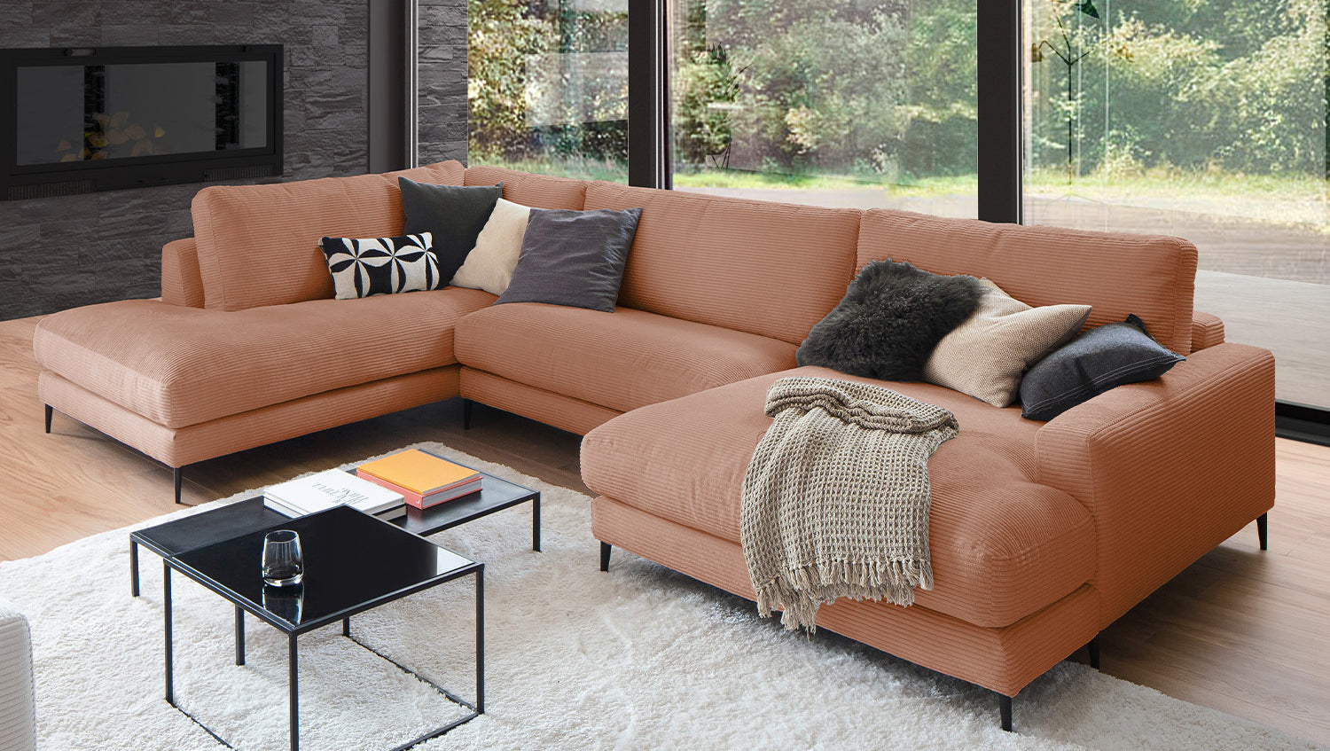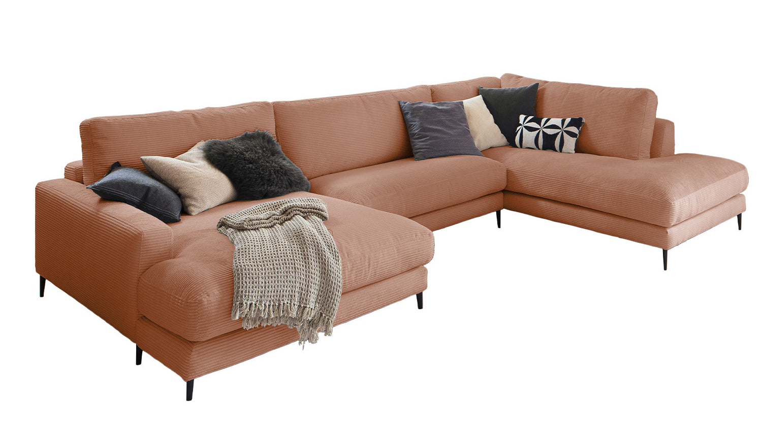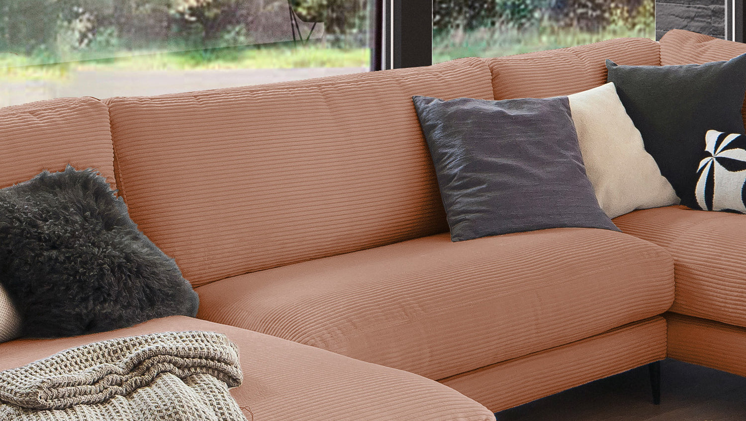 El Sofá en forma de U KAWOLA CARA combina el diseño clásico con la practicidad moderna y se integra a la perfección en cualquier interior. Sus formas suaves y la moderna funda de tela de pana confieren al sofá una elegancia atemporal. La compleja tapicería de 3 niveles garantiza la máxima comodidad de asiento y se adapta a la forma del cuerpo gracias a su estructura desenfadada. El sofá también está equipado con cojines de cámara de alta calidad. Para evitar que el material de relleno se comprima, estos cojines de respaldo deben sacudirse después de cada uso. Sea cual sea la ocasión, ¡todo el mundo encontrará un lugar para relajarse en el sofá CARA!