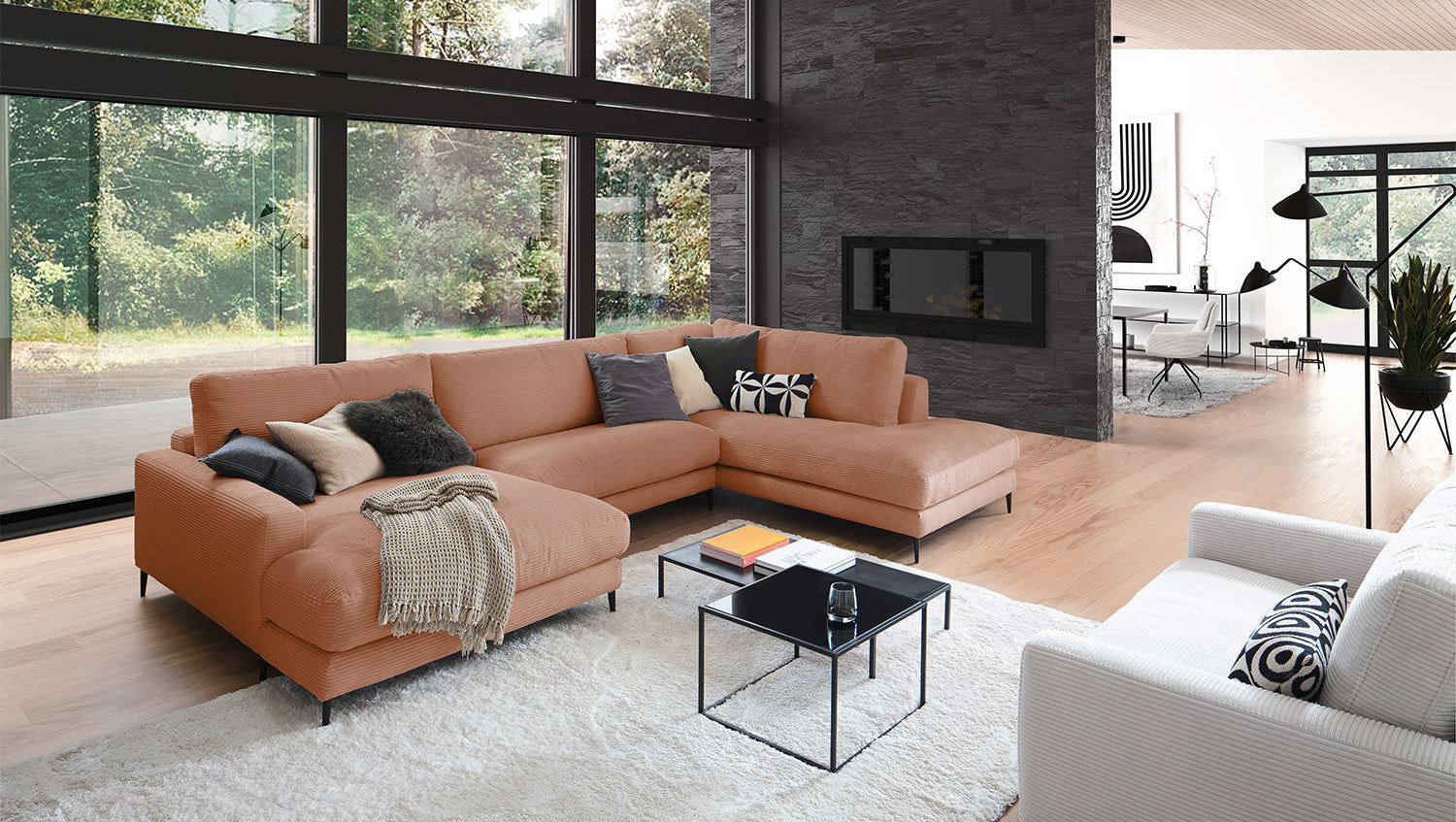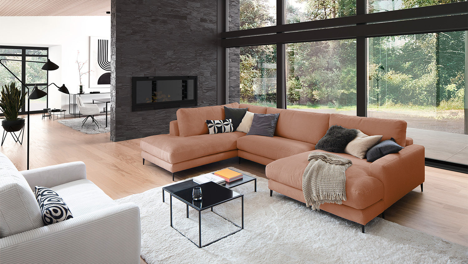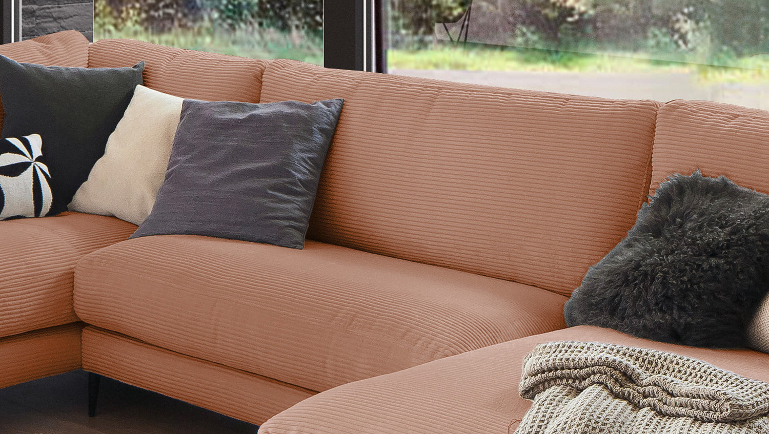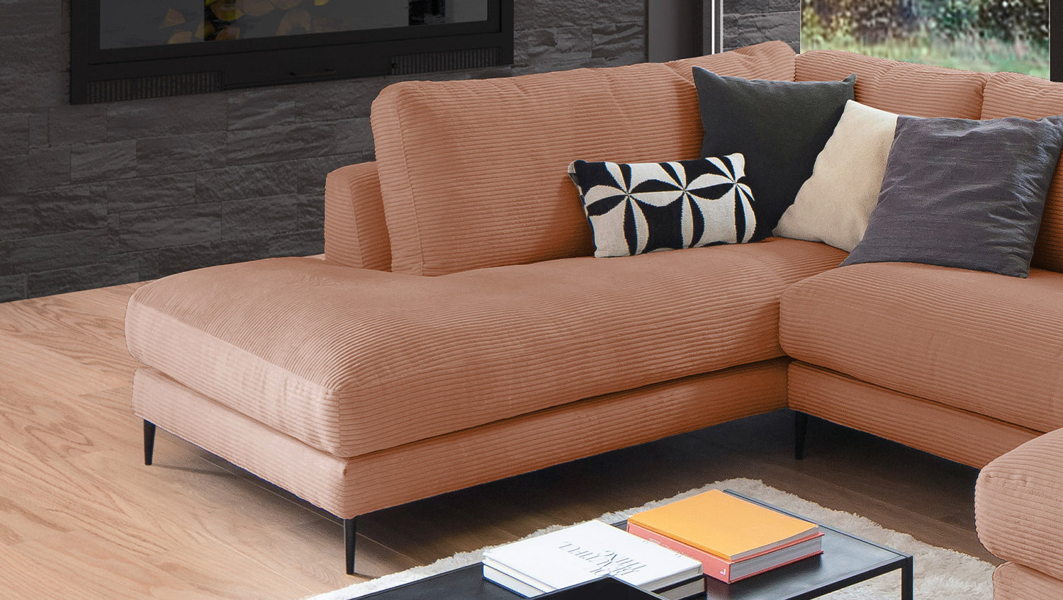 El Sofá en forma de U KAWOLA CARA combina el diseño clásico con la practicidad moderna y se integra a la perfección en cualquier interior. Sus formas suaves y la moderna funda de tela de pana confieren al sofá una elegancia atemporal. La compleja tapicería de 3 niveles garantiza la máxima comodidad de asiento y se adapta a la forma del cuerpo gracias a su estructura desenfadada. El sofá también está equipado con cojines de cámara de alta calidad. Para evitar que el material de relleno se comprima, estos cojines de respaldo deben sacudirse después de cada uso. Sea cual sea la ocasión, ¡todo el mundo encontrará un lugar para relajarse en el sofá CARA!